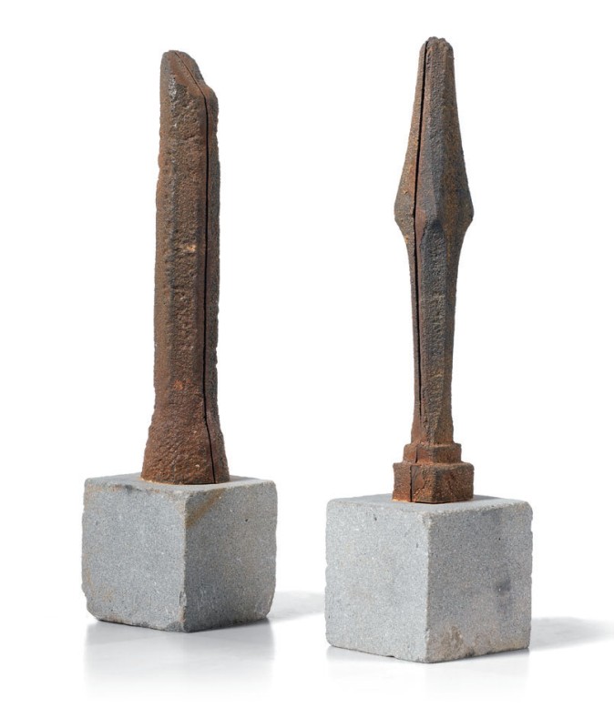 Beverly Pepper New York 1924 Lotto di due sculture, anni Novanta Ferro, cm. 22 h. ognuna Esposizioni: Grandi maestri, piccole sculture, da Depero a Beverly Pepper, a cura di Lara Vinca Masini, Pistoia, Palazzo Sozzifanti, 6 aprile - 30 giugno 2013, cat. pp. 396, 397, illustrata a colori. Doni dell'artista. Due bozzetti realizzati per grandi sculture esposte alla mostra personale di Beverly Pepper a Forte Belvedere, Firenze, 1998.