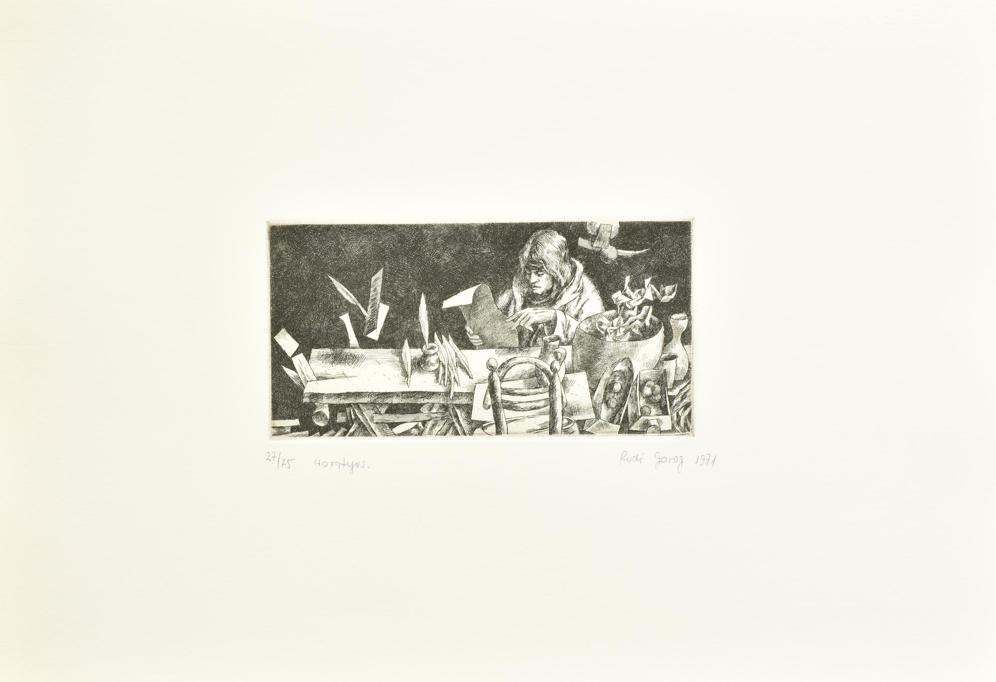 Rudi Gorog HORATIUS incisione su carta Fabriano, battuta cm 10x20, su foglio...