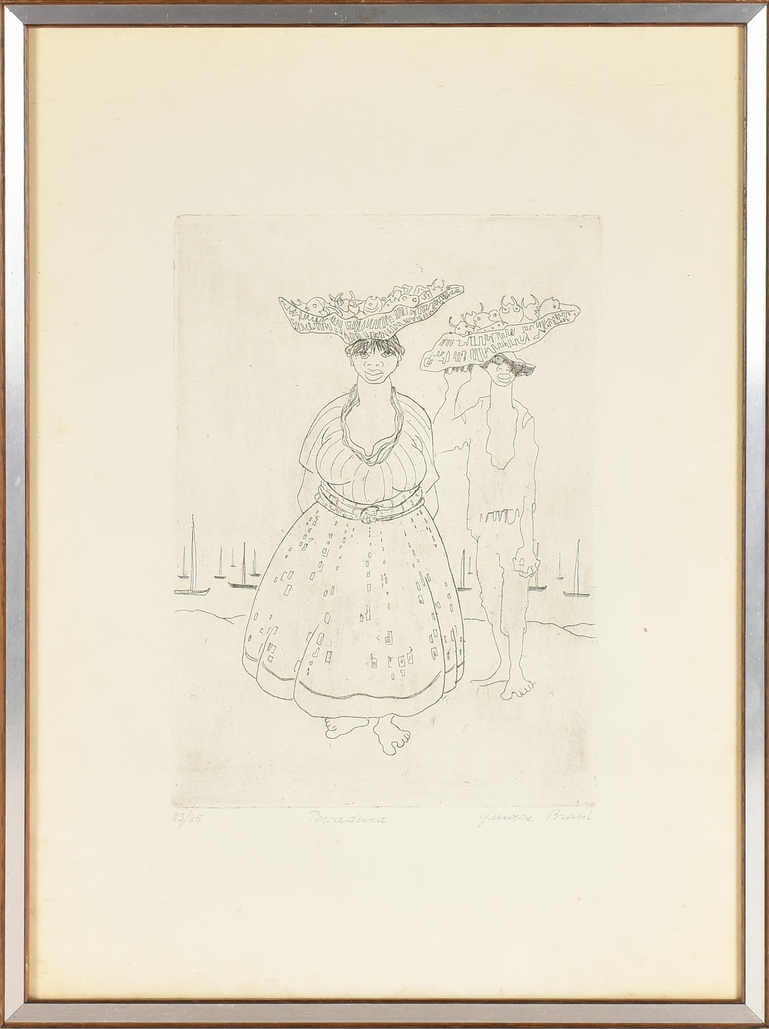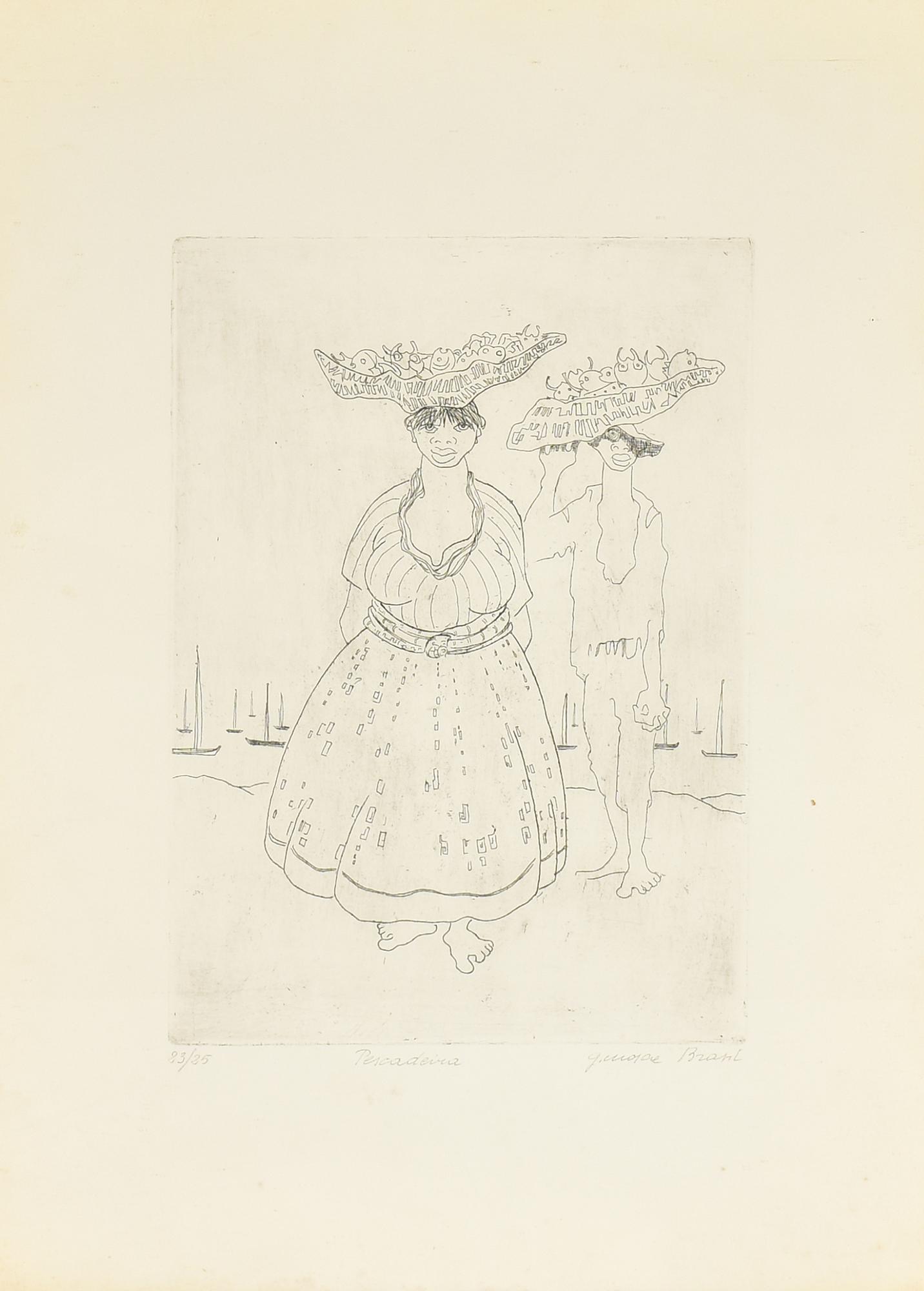 Guido Mosca PESCADEIRA BRASIL incisione su carta, battuta cm 31x22,5, su...