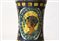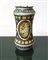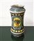Albarello in maiolica, inizi 20° Secolo cm 24, diametro bocca cm 9,5 Con decori nei toni del giallo e del blu e doppio medaglione raffigurante volatile e viso di giovane uomo, Italia meridionale.