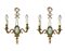N. 2 Appliques a due luci, 20° Secolo h 46x29 cm In metallo dorato con ovale centrale in porcellana in stile Wedg Wood