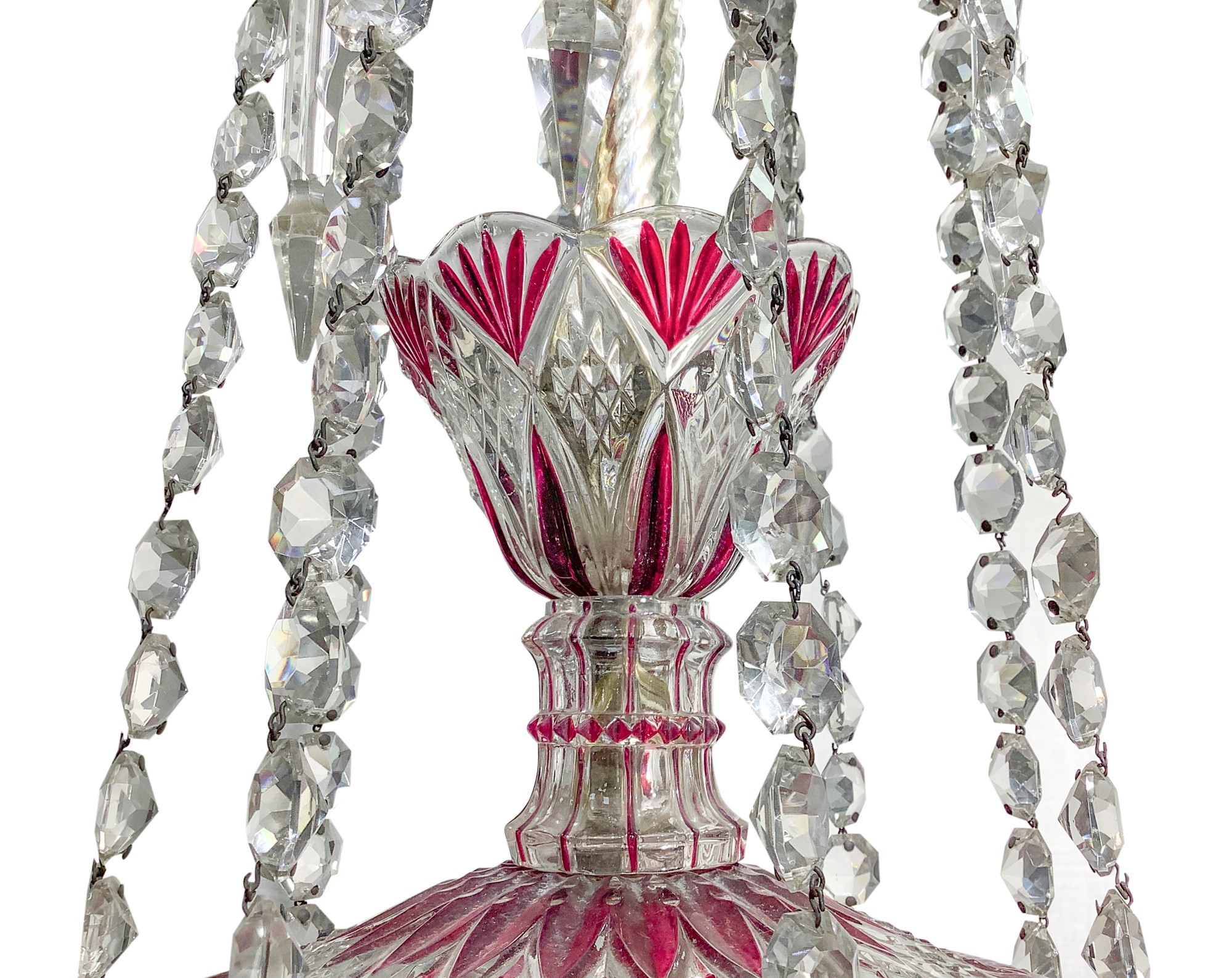 Baccarat - Importante ed elegante lampadario in cristallo trasparente e bordeaux a 12 luci, Nineteen° Secolo