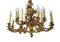 Grande lampadario in bronzo e ottone dorato al mercurio, a 18 luci, con decori a ramage di foglie., XVIII / XIX Secolo