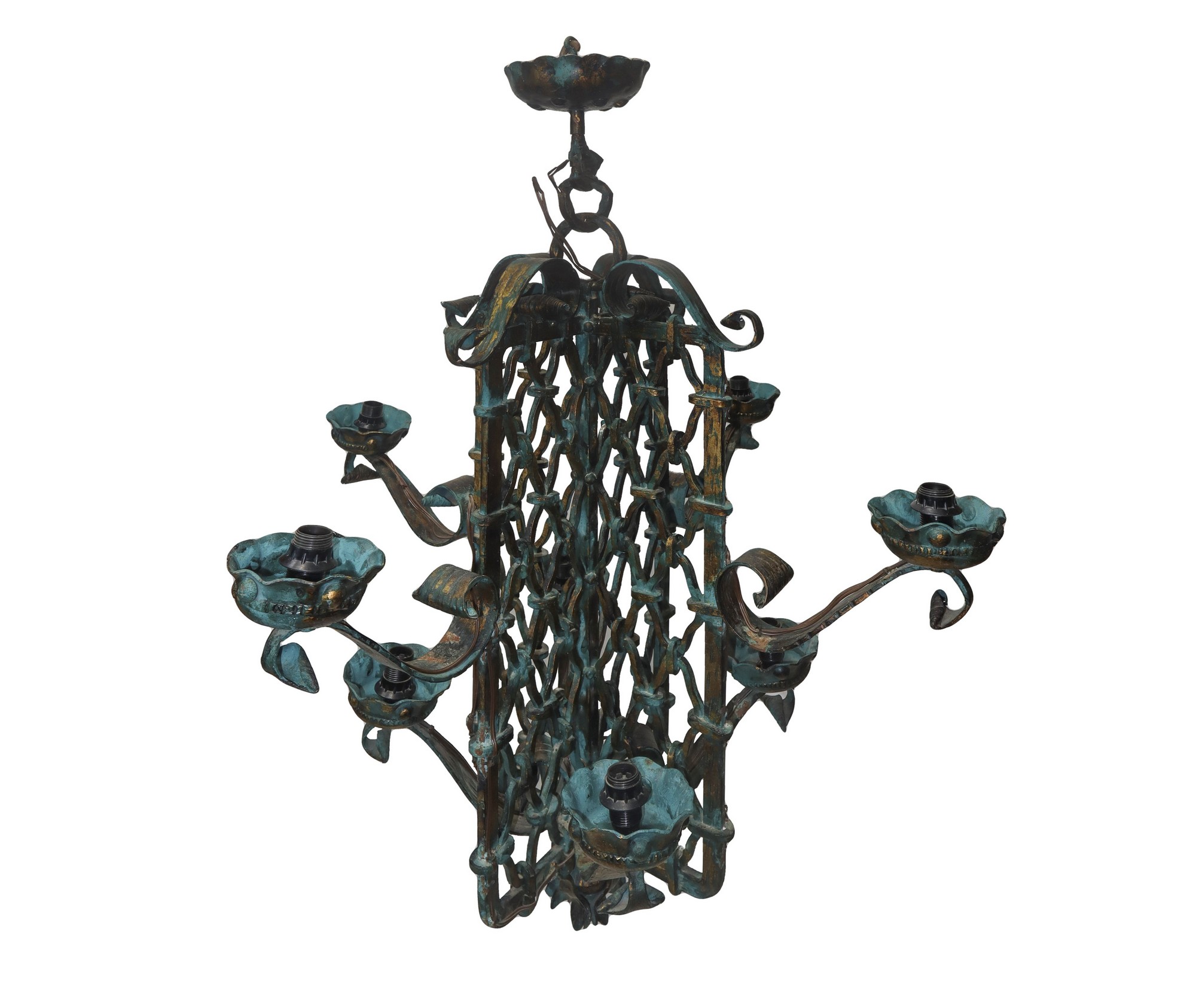 Lampadario in ferro battuto cm 105 x cm 85 Filatura su una boccia