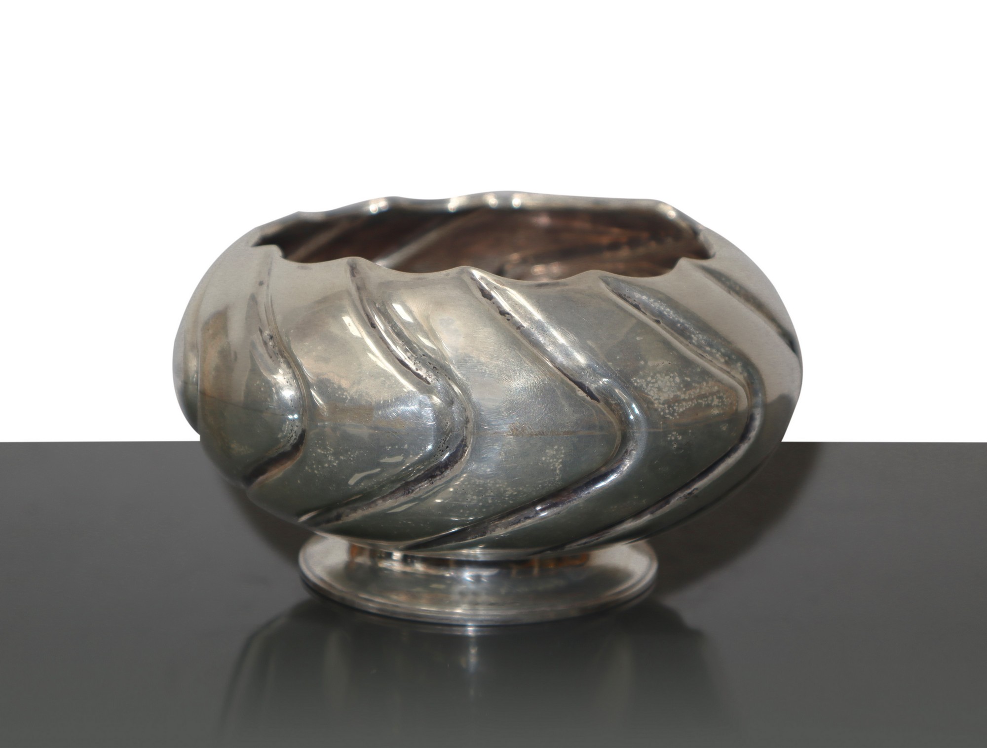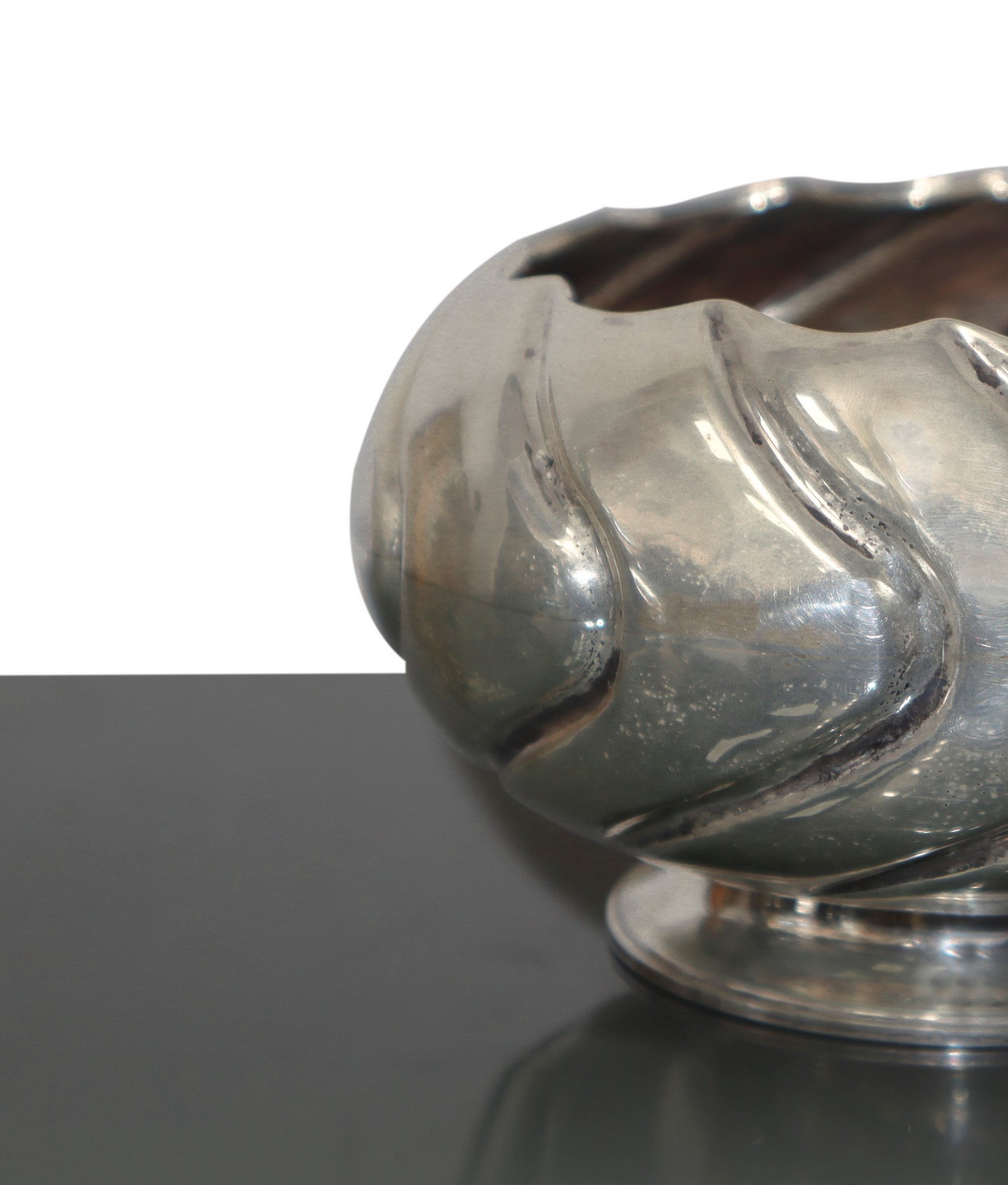 Piccola alzata in argento 800, XX Secolo h cm 9, gr. 248 Costolata, con bocca smerlata.