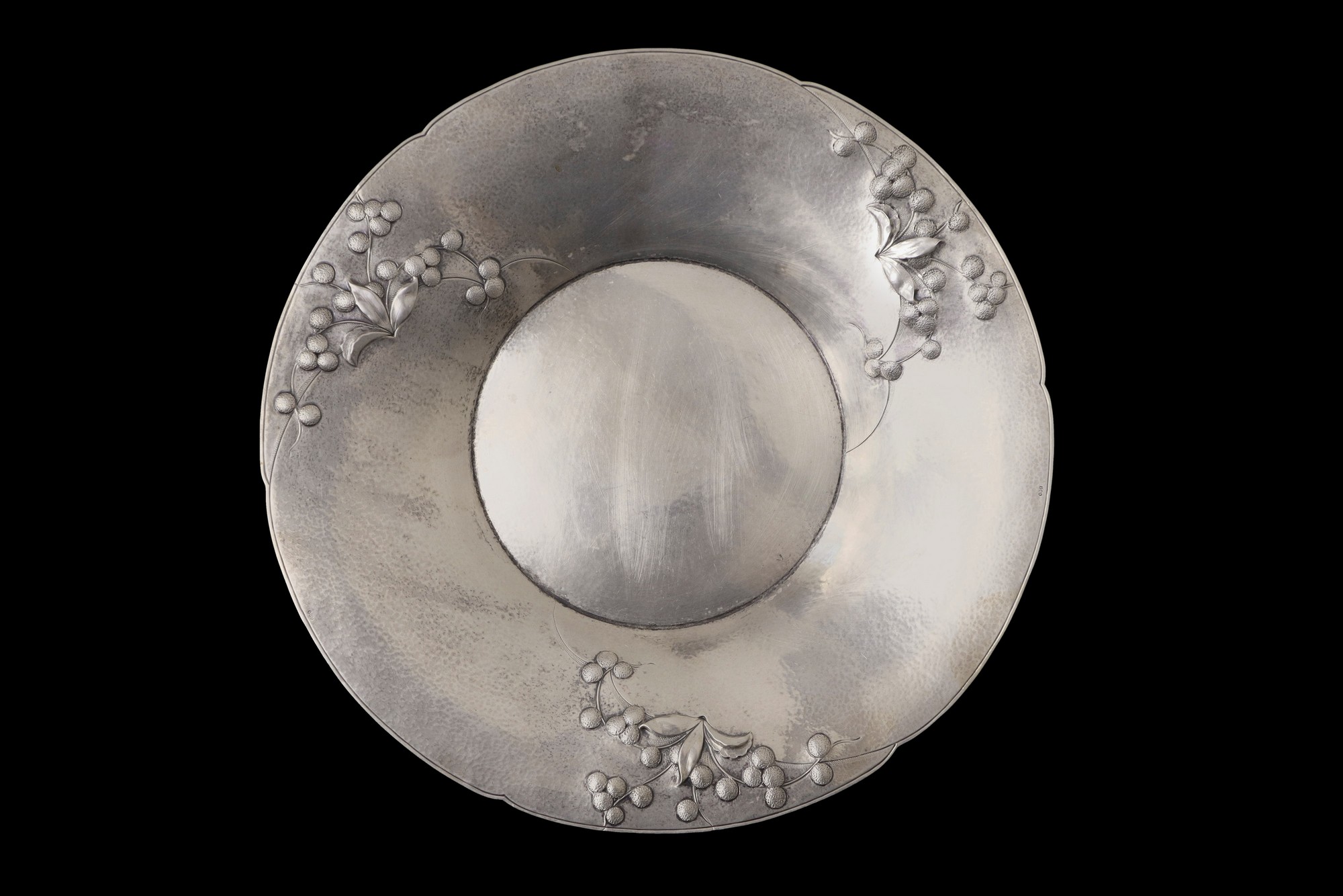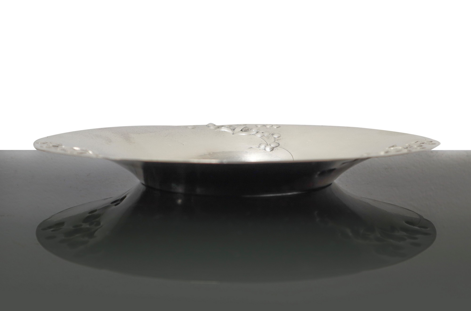 Piatto in argento 800, sbalzato a motivi floreali, 20° Secolo