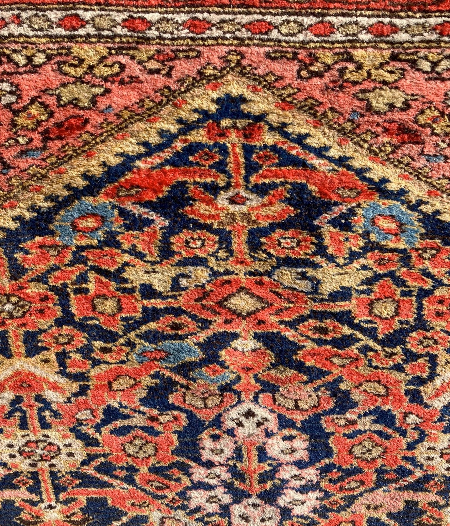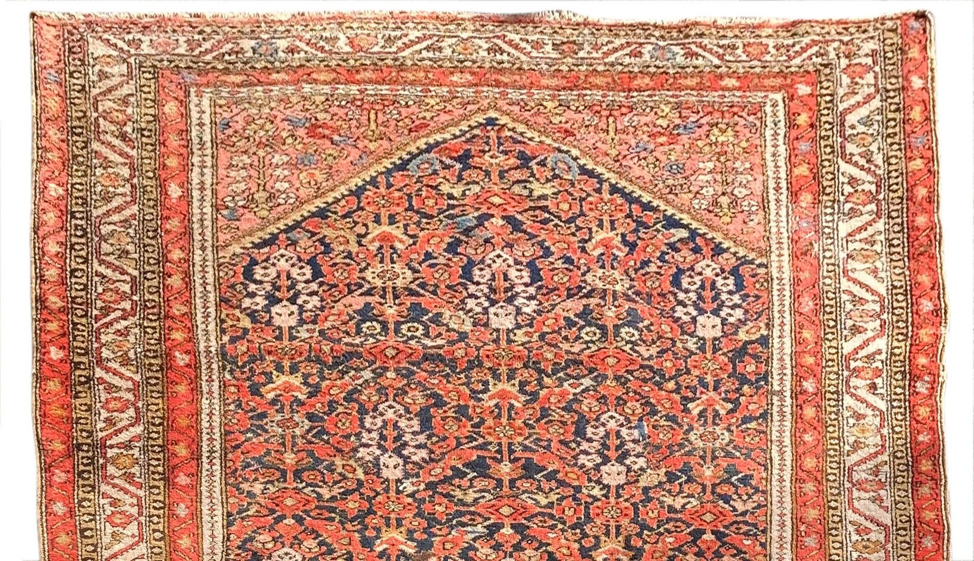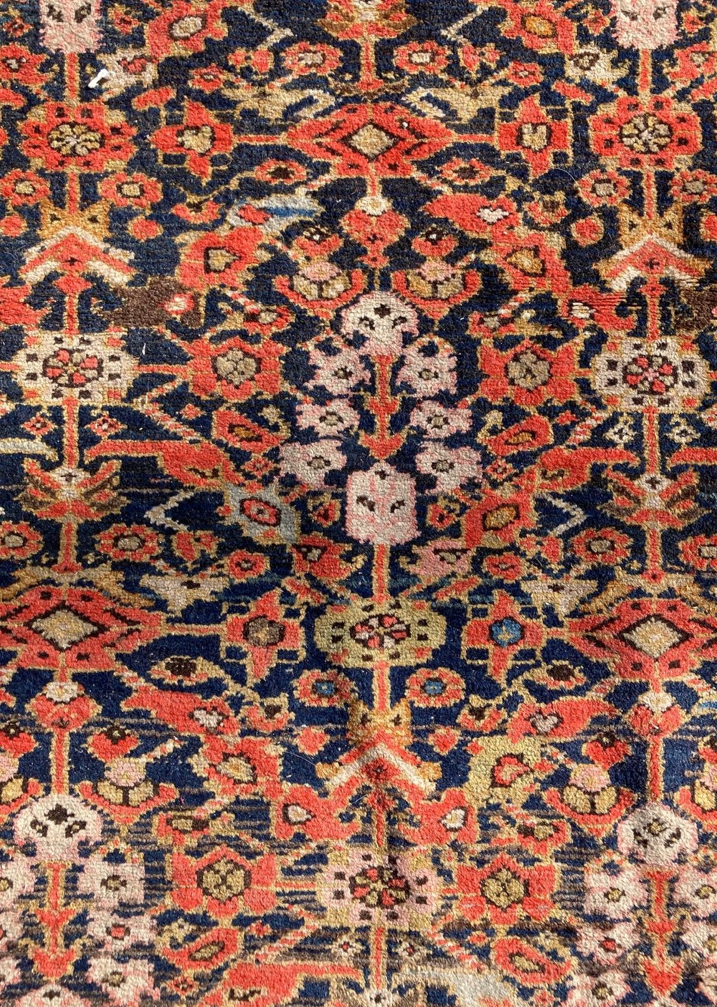Tappeto Malayer, 1940-50 cm 400x195 Persia occidentale. Ordito e trama in cotone, vello e lana. Zone consunte.