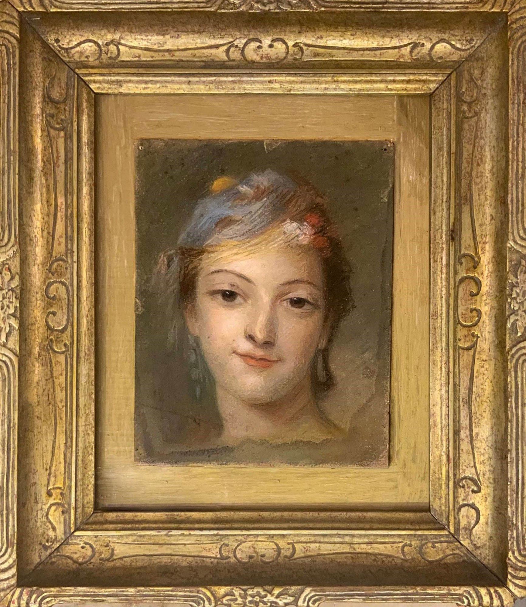 Donna con cappello e fiori, Nineteen° Secolo h cm 22 x cm 17 olio su tela