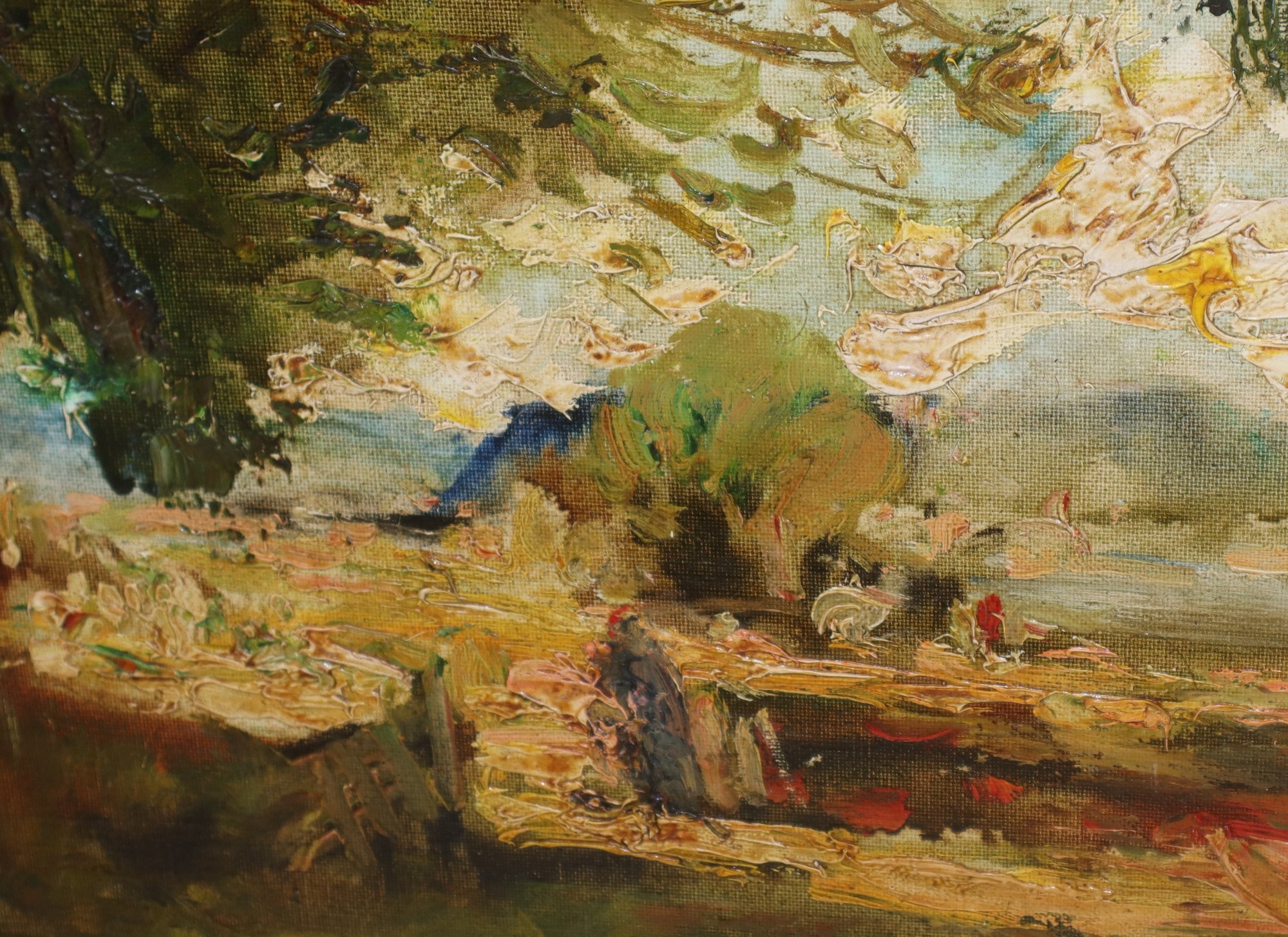 Angelo Pisani (Mirano 1885-Padova 1950) - Paesaggio, XX Secolo cm 60 x cm 90 Olio su tela Opera sprovvista di cornice