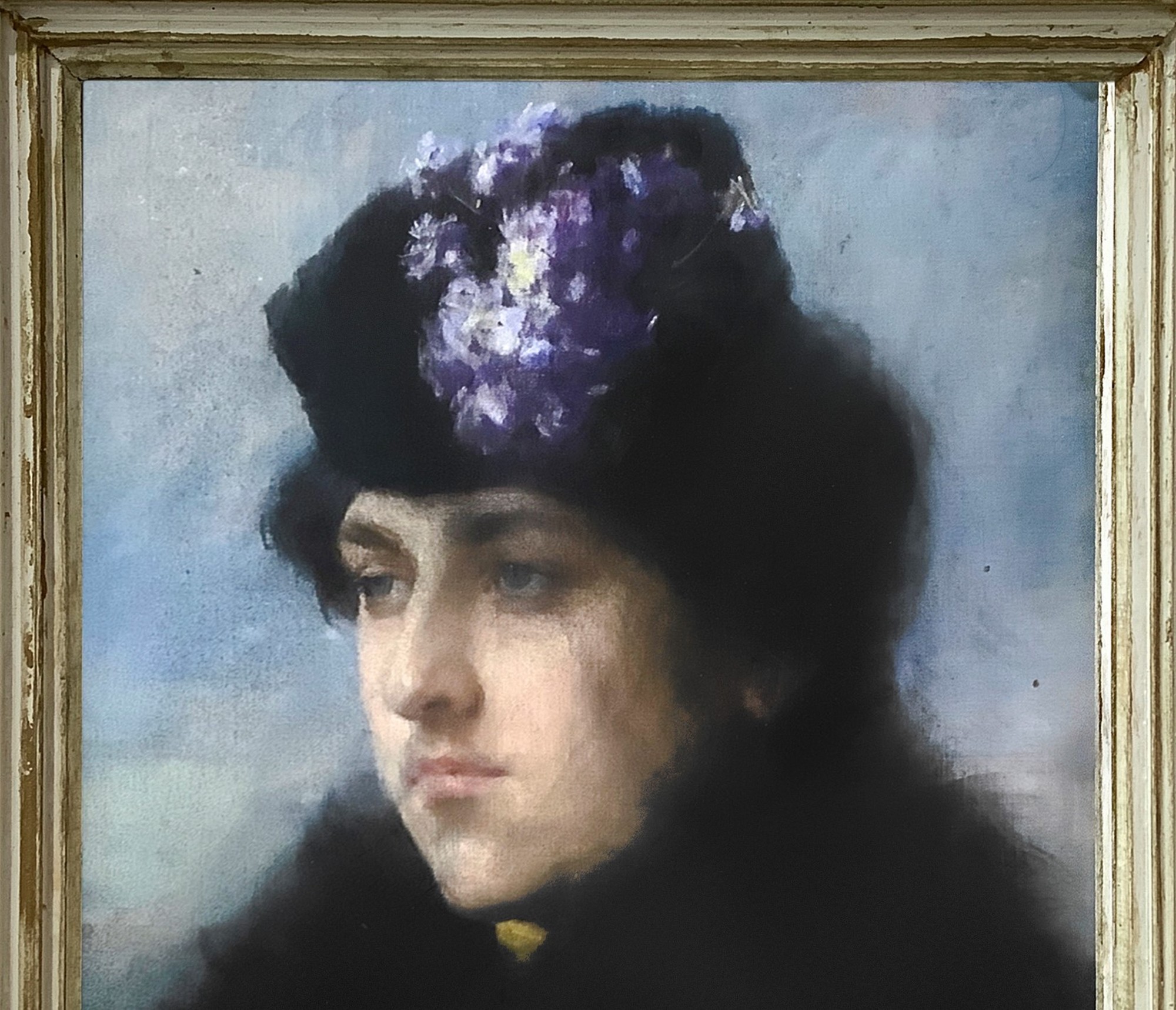 Alexandre Jacques Chantron (Nantes 1842-Nantes 1918) - Ritratto di donna con cappello floreale, nineteen° Secolo