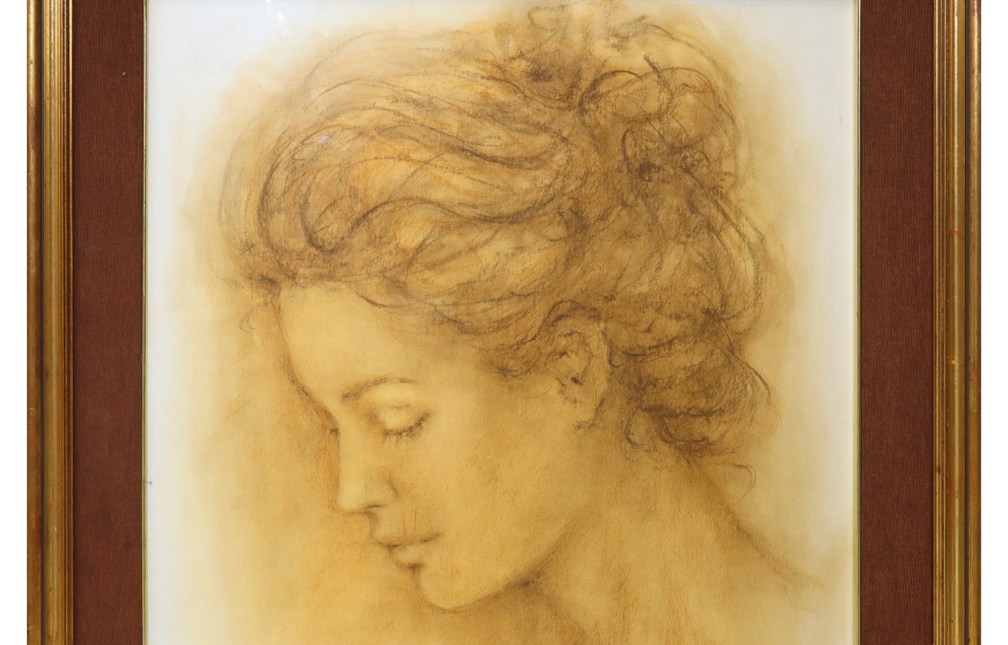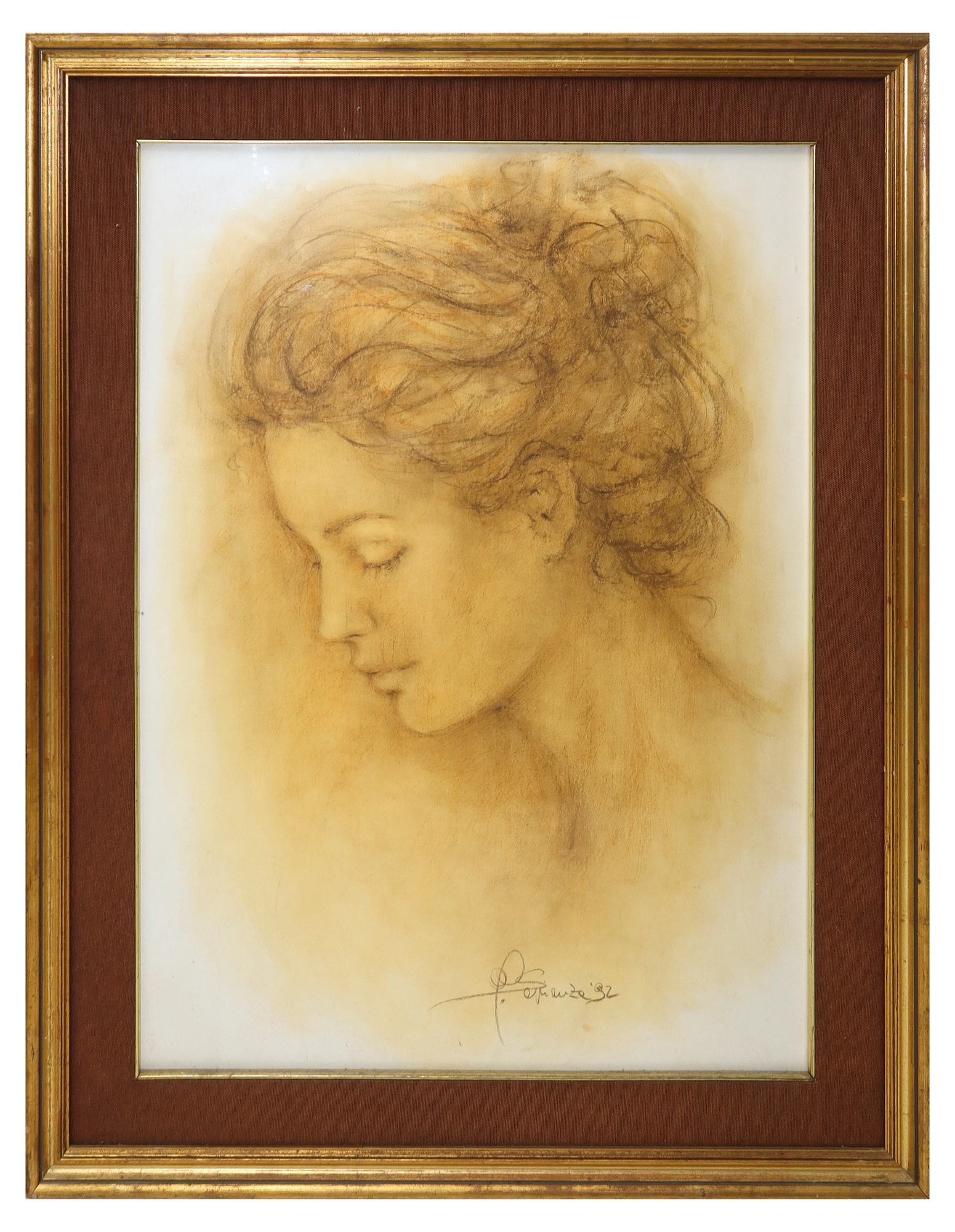 Mariella Sapienza (Catania 1949) - Viso di donna cm 70 x cm 50, in cornice cm 85 x cm 65 Pastello su cartoncino Mariella Sapienza, firmato in basso a destra e sul retro, firmato e datato 31 ottobre 1992