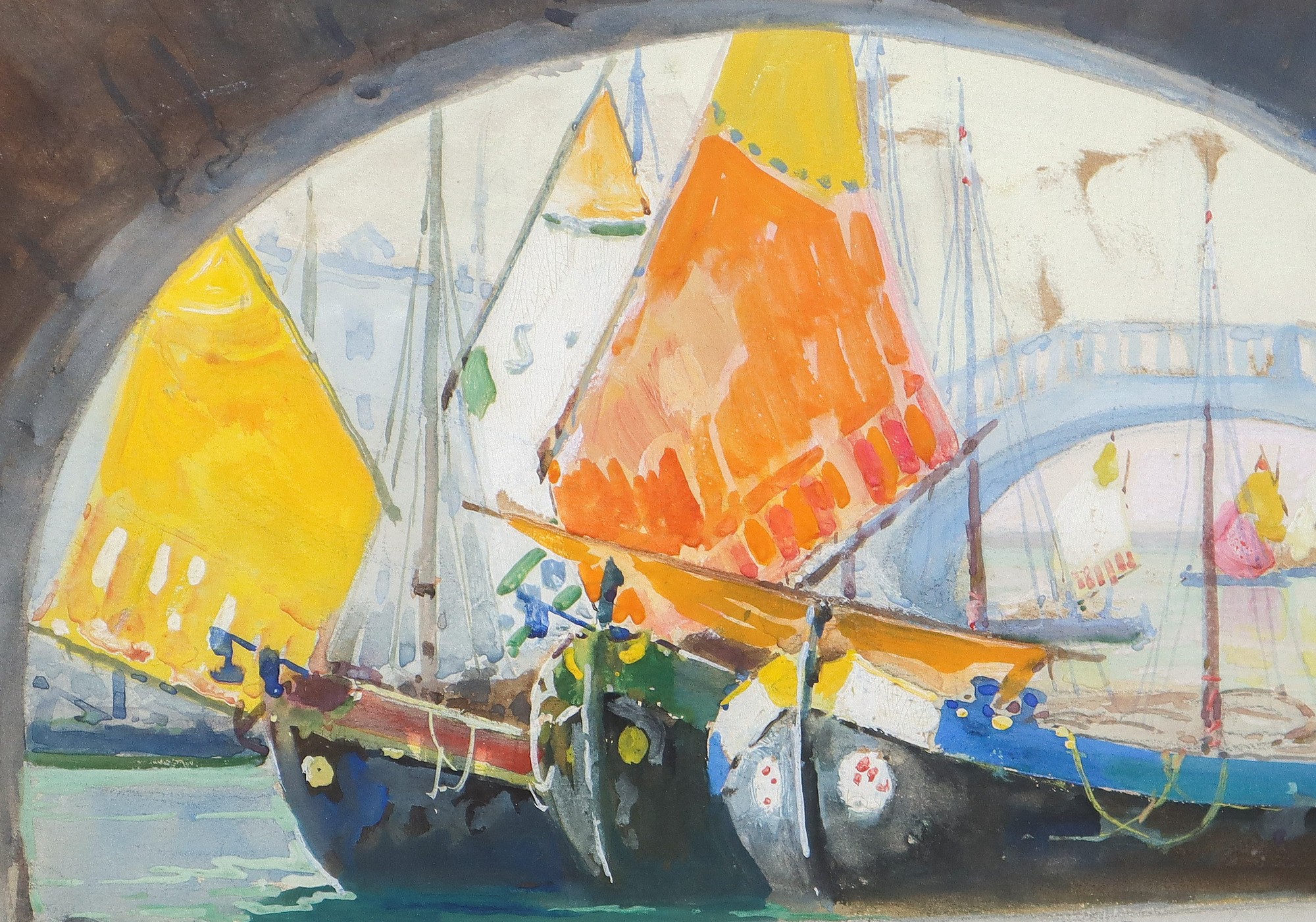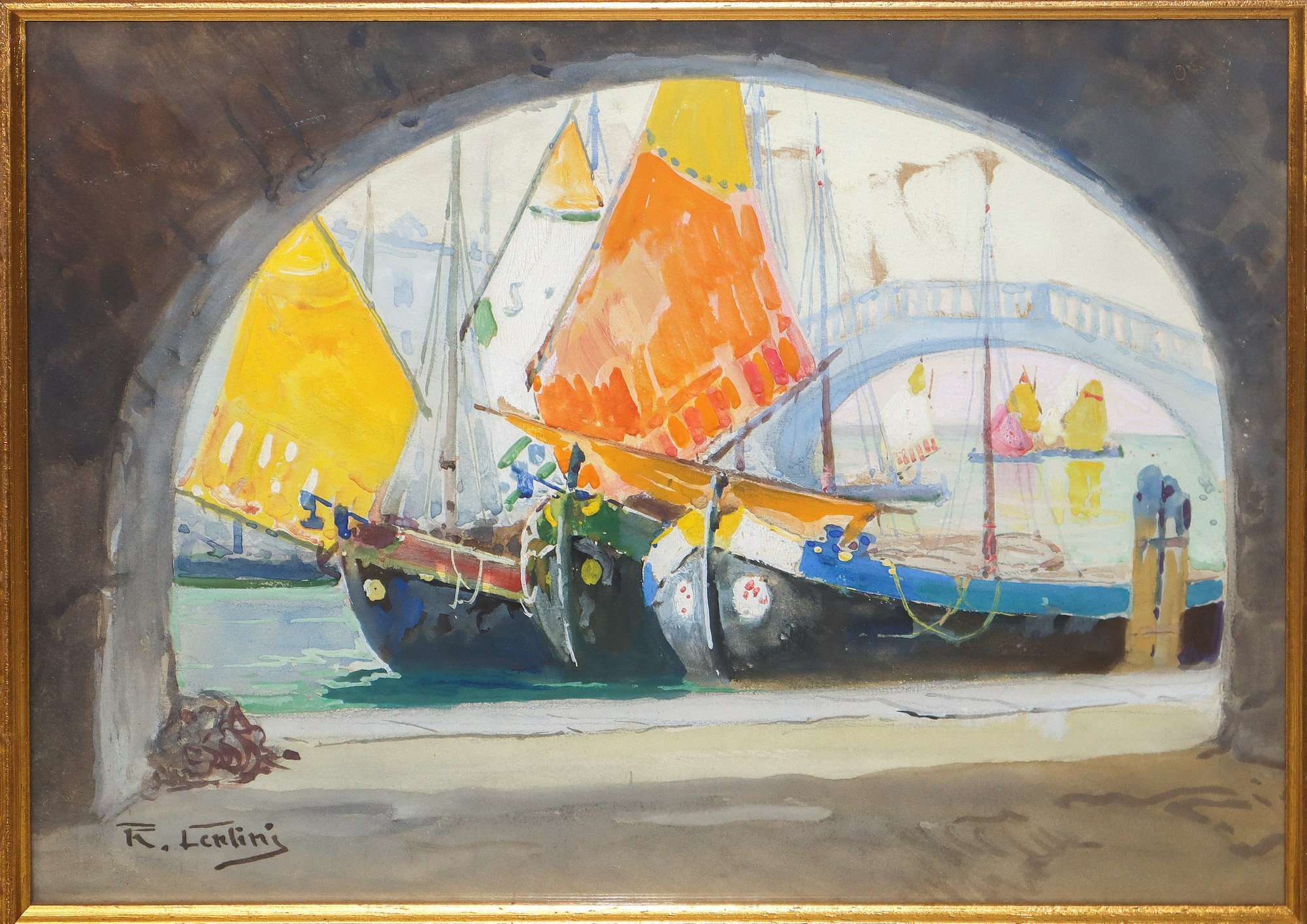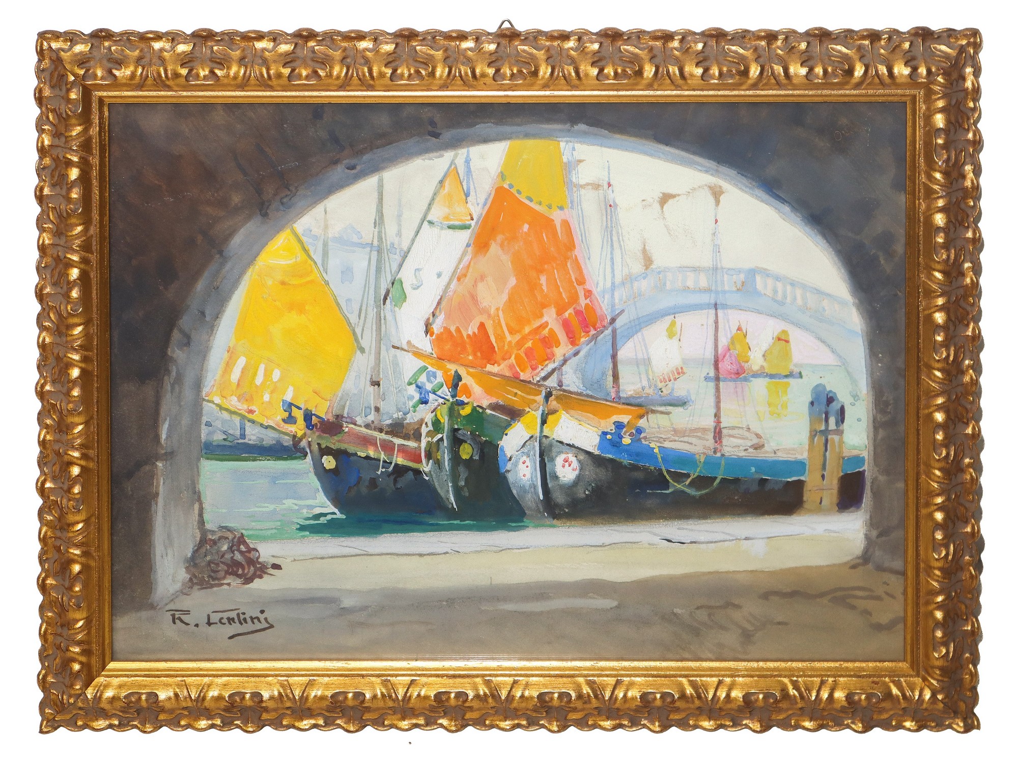 Rocco Lentini (Palermo 17/10/1858-Venezia 20/10/1943) - Bozzetto di scena per l'opera "Baruffe chiozzotte" di Goldoni, 1931 cm H24 x L32 senza cornice, con cornice H 33 x 43 L cm Acquarello su carta