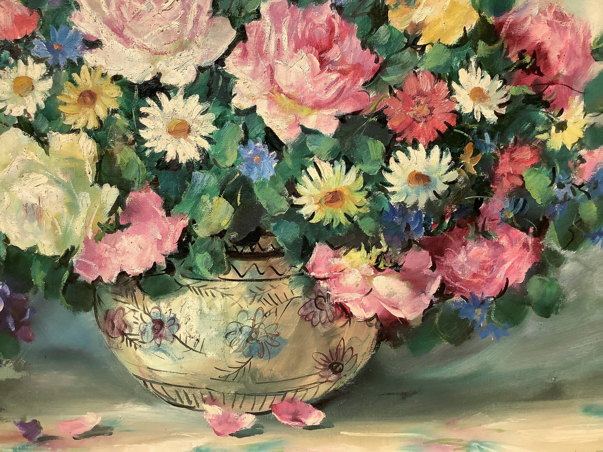 Natura morta di fiori in vasi 70x100 cm, in cornice 92x122 cm Dipinto a olio su tela Firmato in basso a destra G. Daliani.