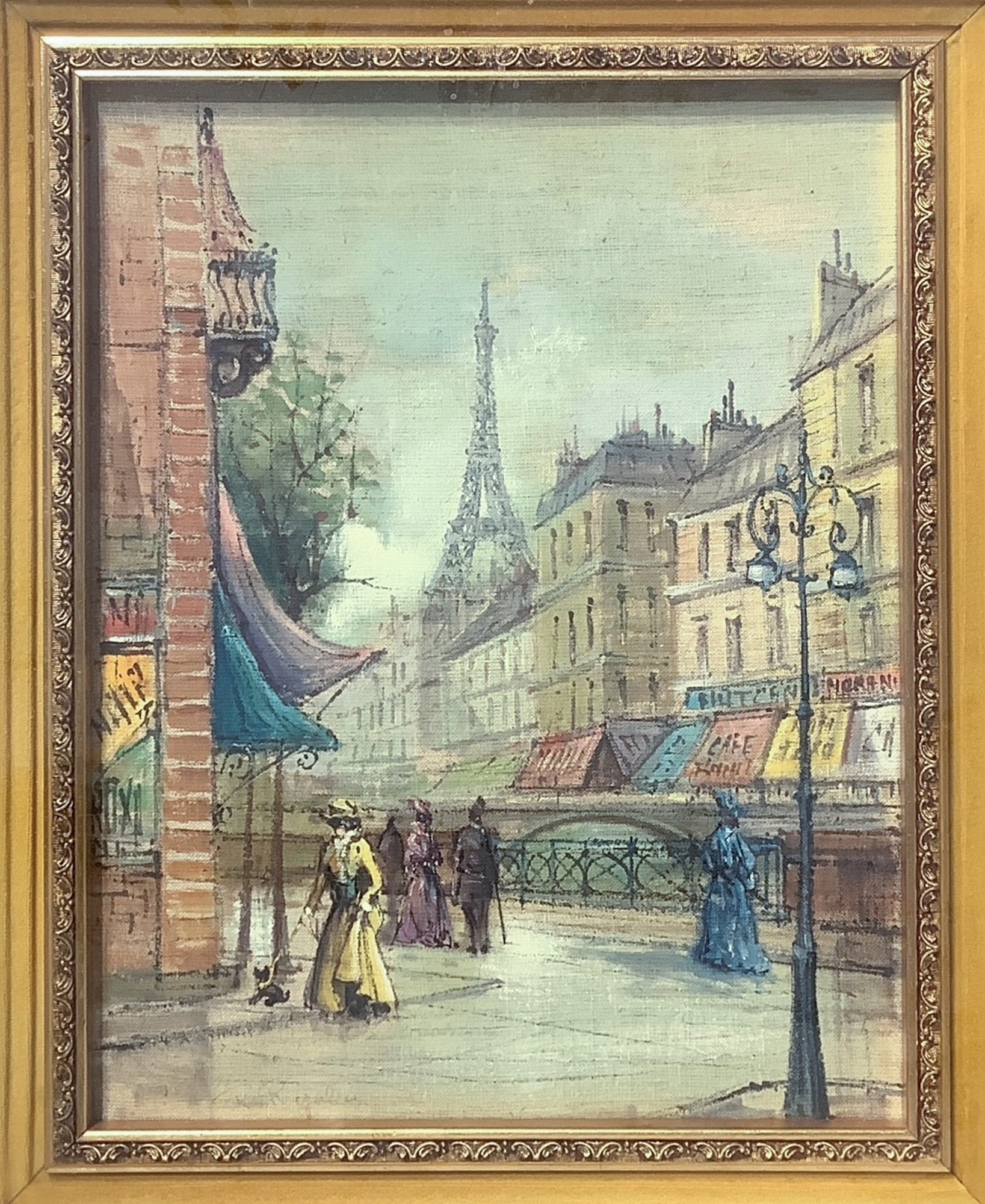 Parigi e la Bella Epoque 50x40 cm, in cornice 83x73 cm Pastello su tela Raffigurante scorcio di Parigi con la Tour Eiffel. Firmato Roberto Regalier.