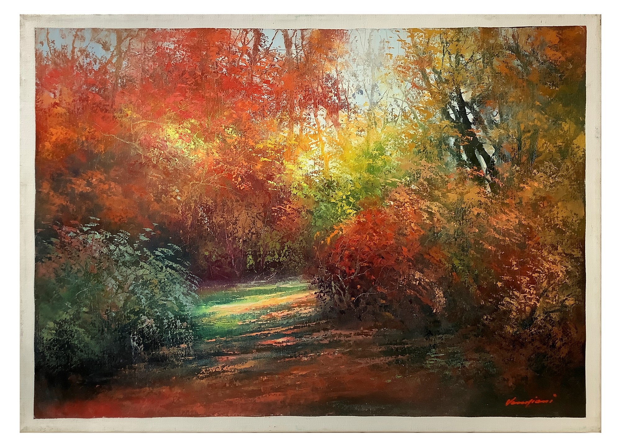 Paolo Veneziani (Roma 1942) - Rossi d'Autunno, XX Secolo 50 x 70 cm olio su tela