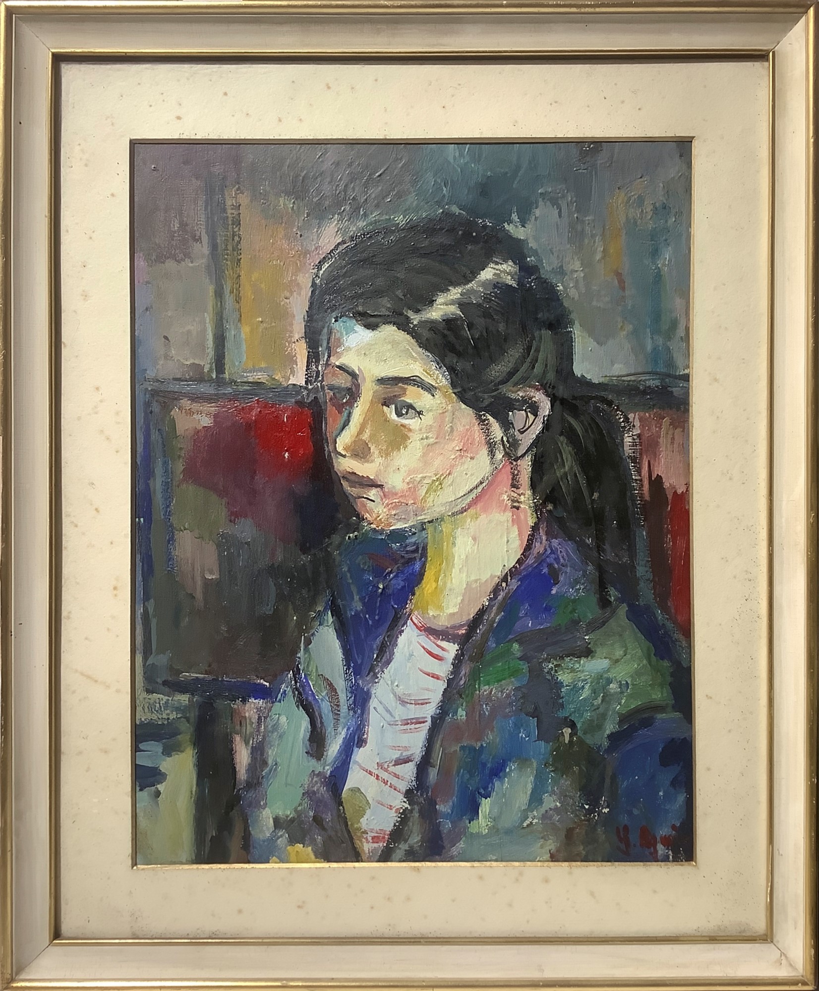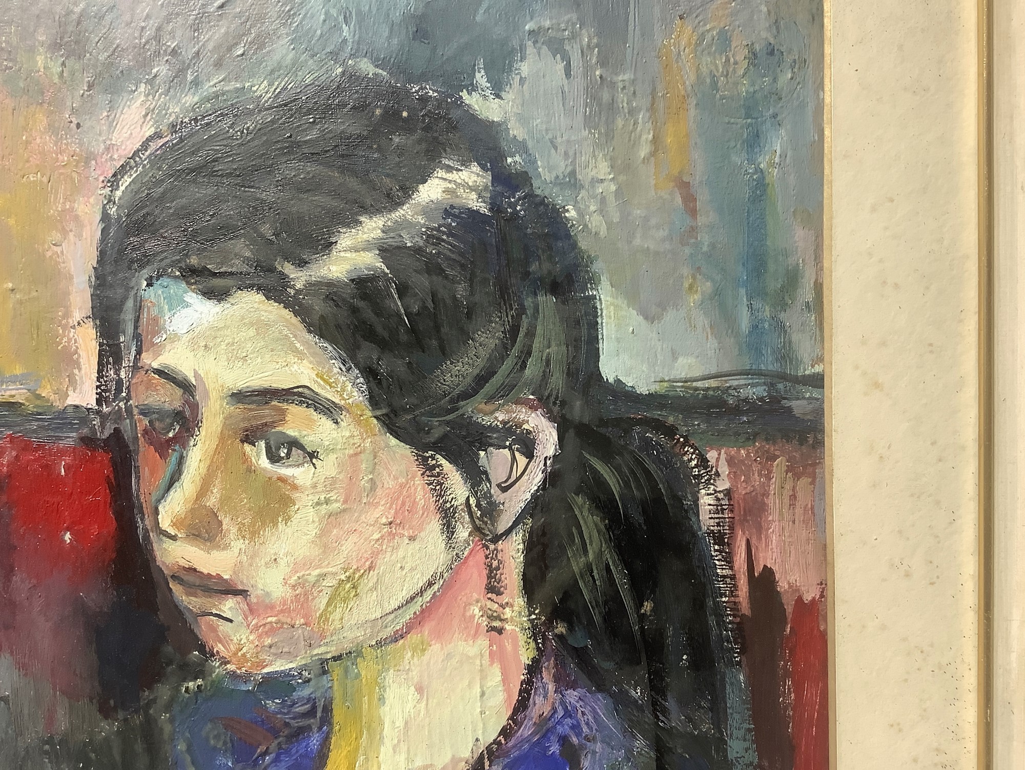 Hilda Agnini - Ritratto di fanciulla, 20° Secolo Cm 58x45, in cornice 77x63 Dipinto ad olio su masonite