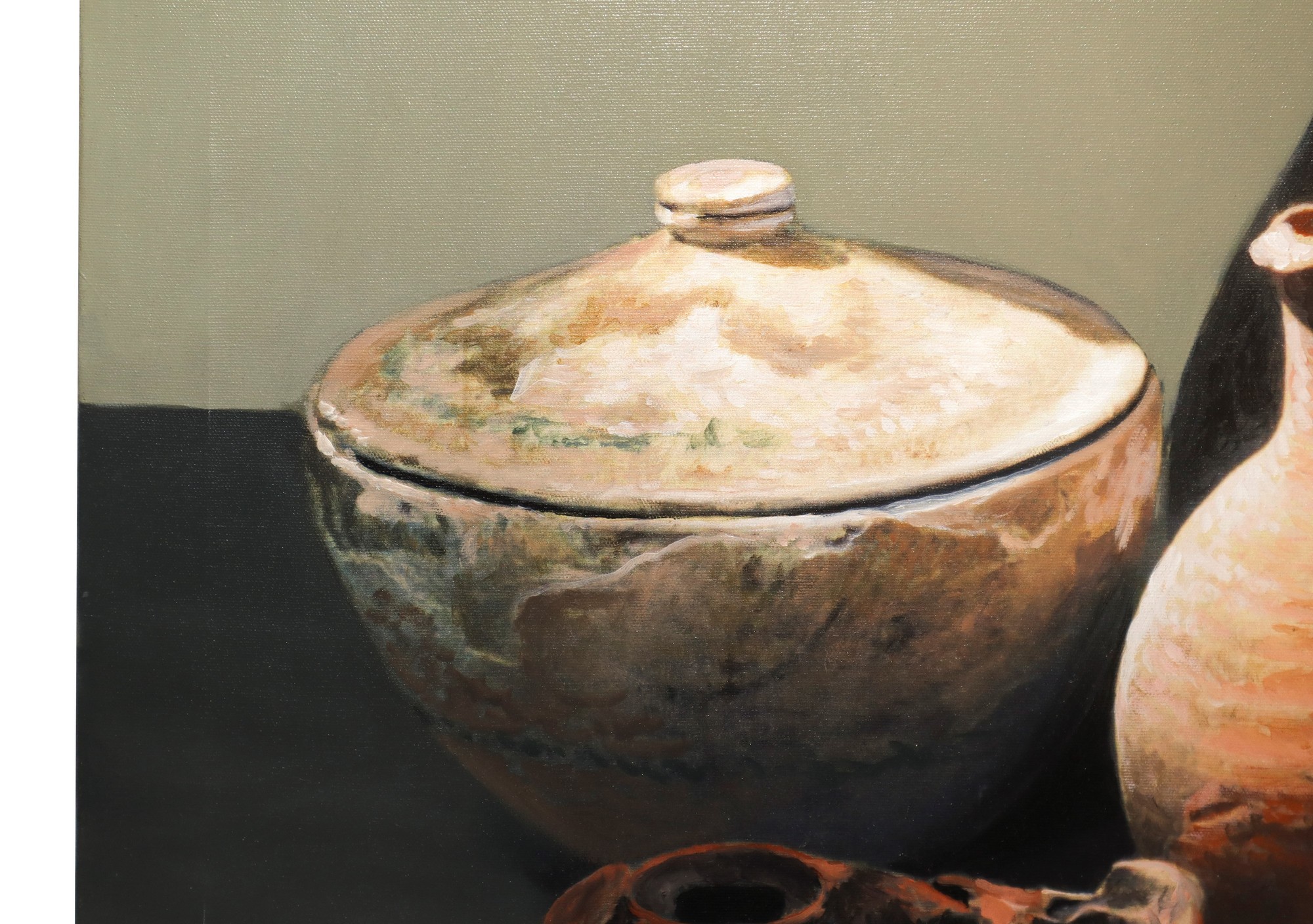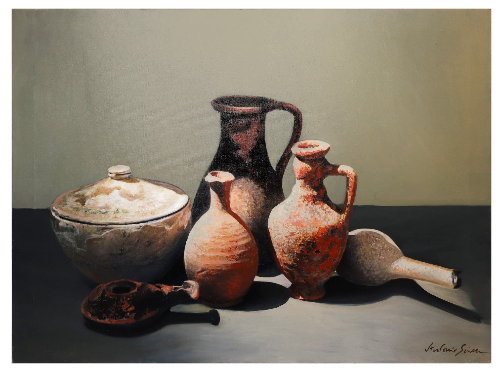 Antonio Sciacca (Catania 1957) - Natura morta di vasi in cotto cm 60x80 Dipinto a olio su tela Firmata in basso a destra. Opera sprovvista di cornice.