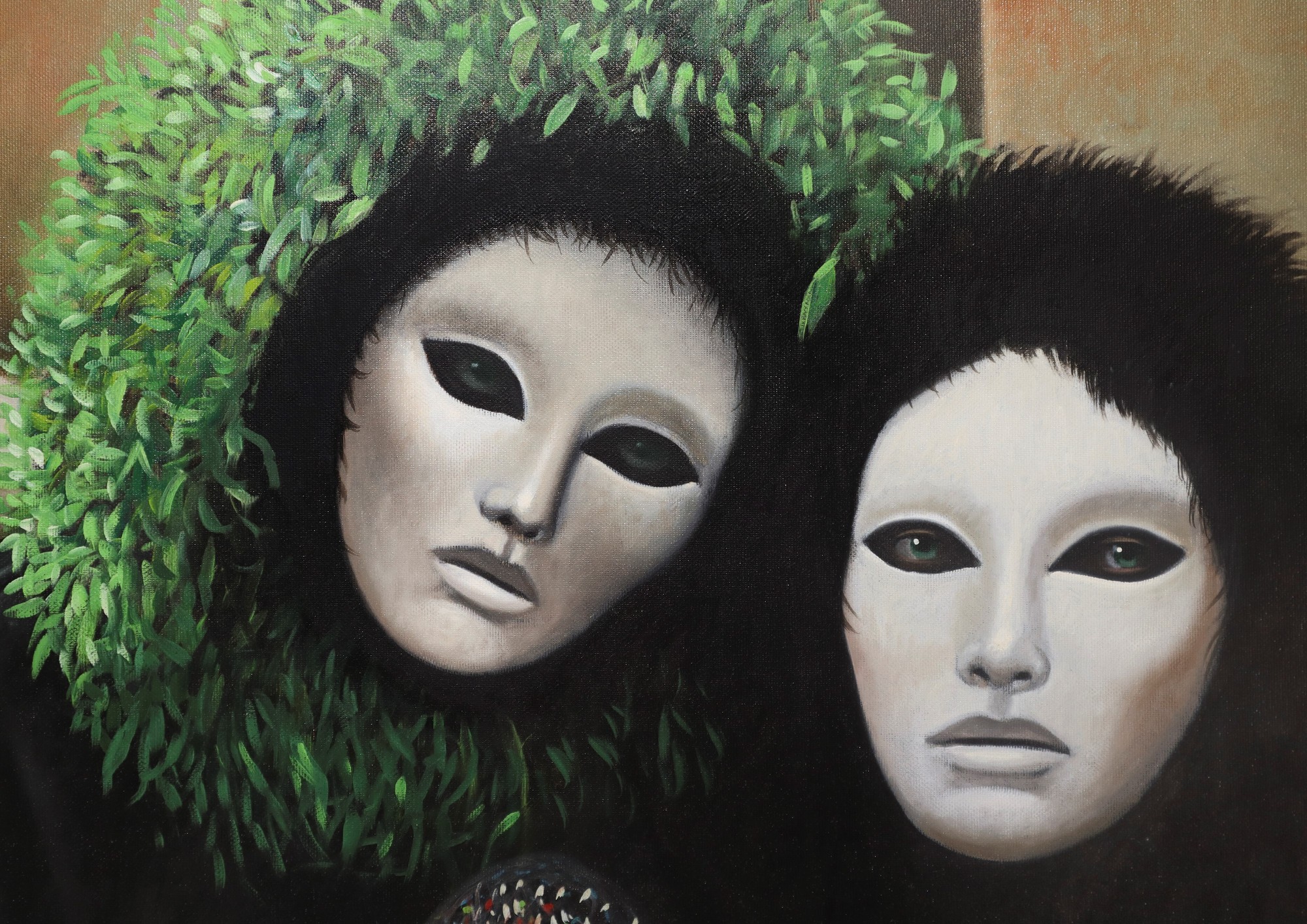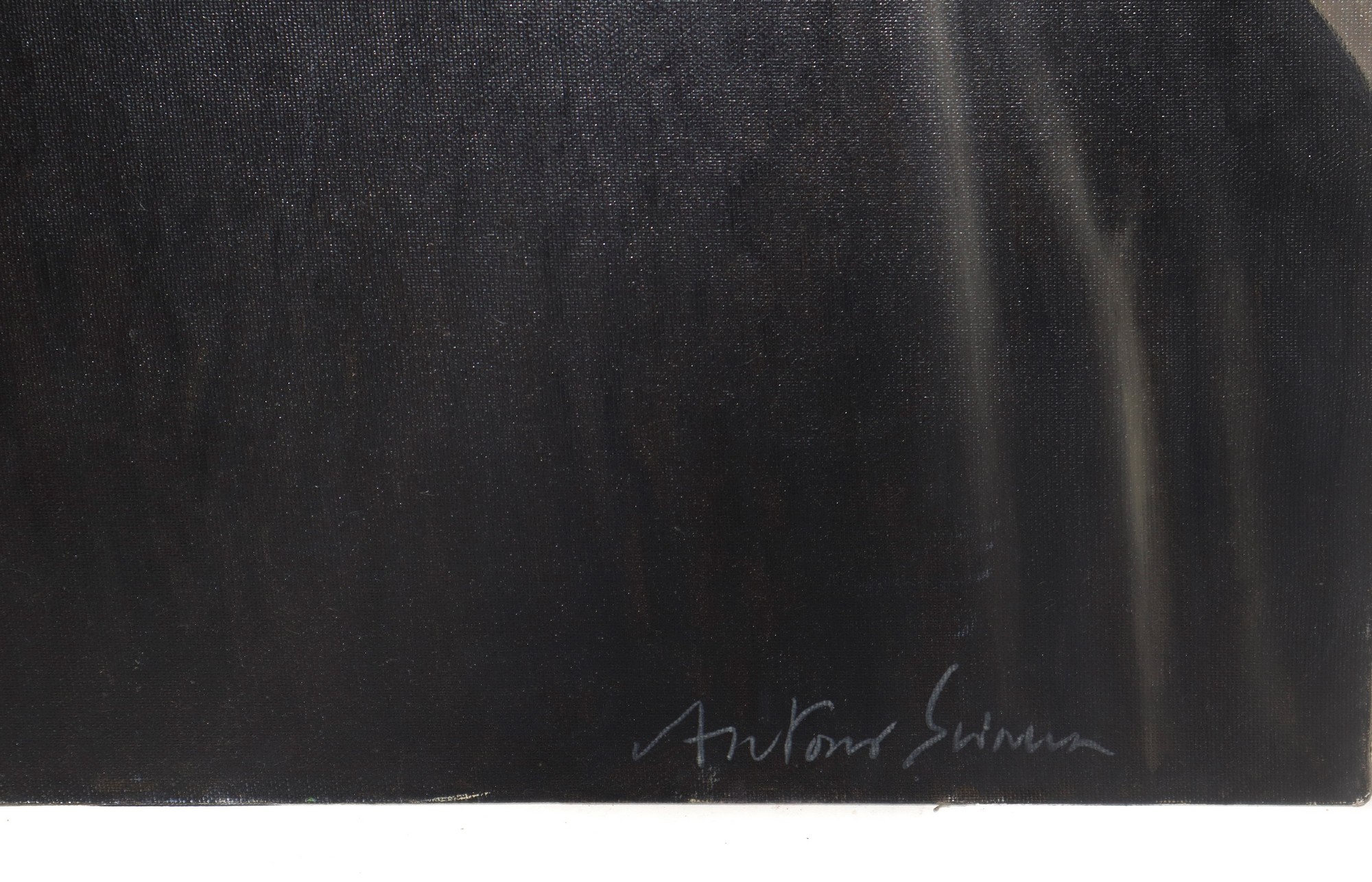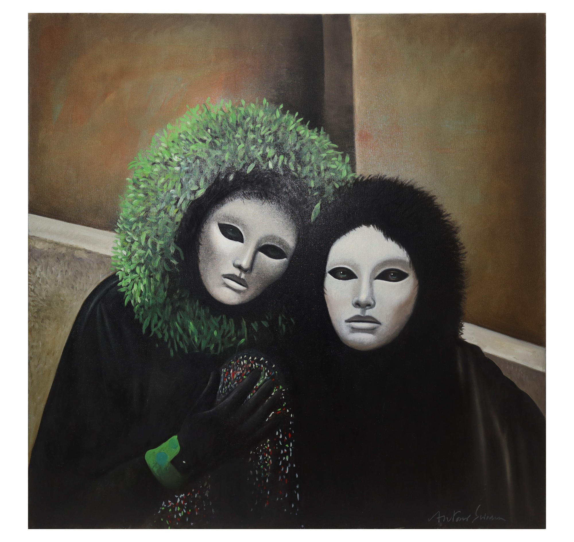 Antonio Sciacca (Catania 1957) - Coppia di personaggi in abito nero, 2004 Cm 80x80 Dipinto a olio su tela Firmata in basso a destra e sul retro. Opera sprovvista di cornice.