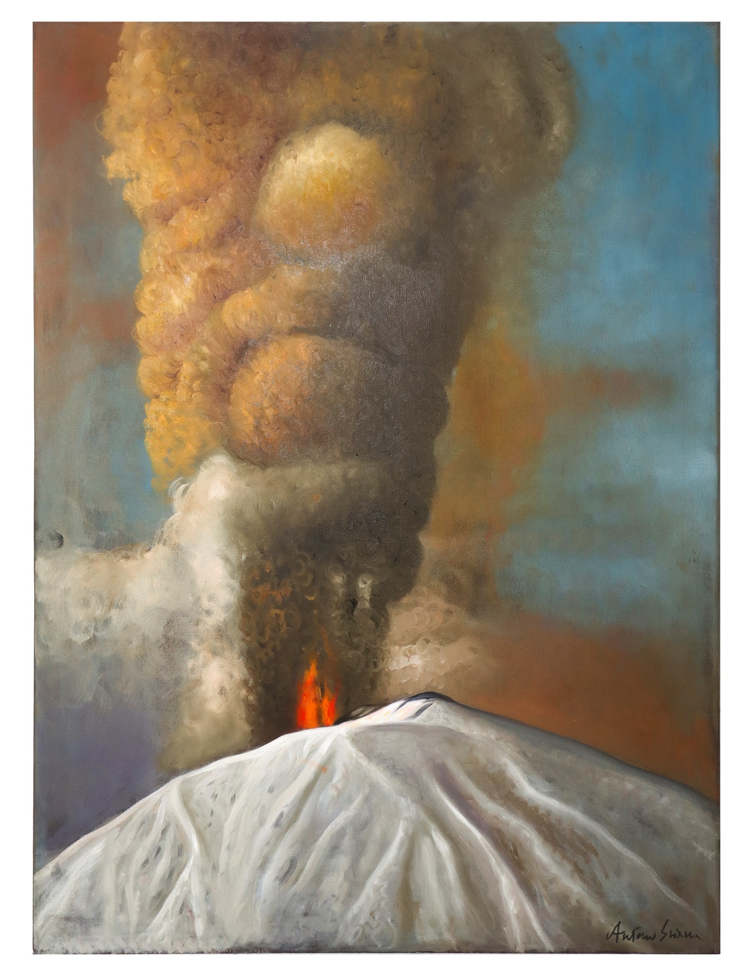 Antonio Sciacca (Catania 1957) - Eruzione dell'Etna Cm 90x65 Dipinto a olio su tela Firmata in basso a destra e sul retro. Opera sprovvista di cornice.
