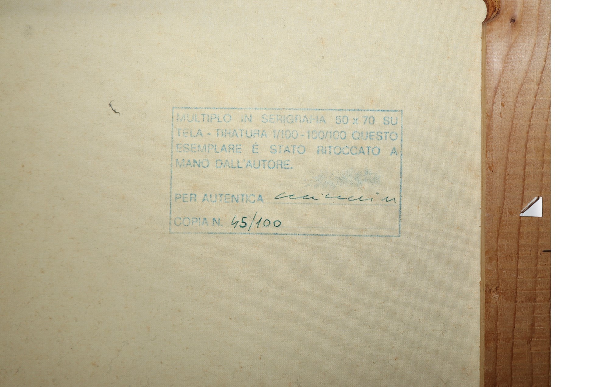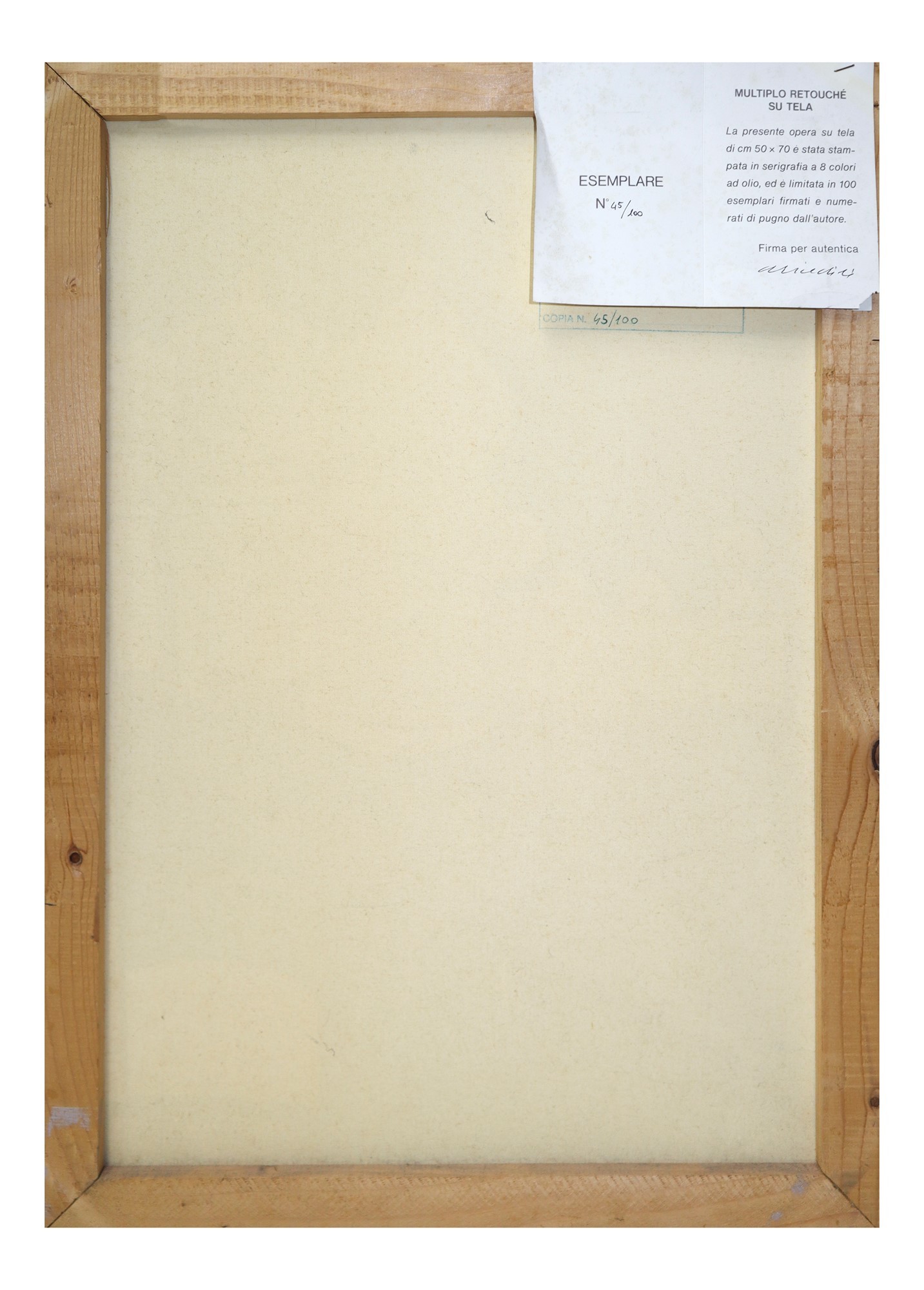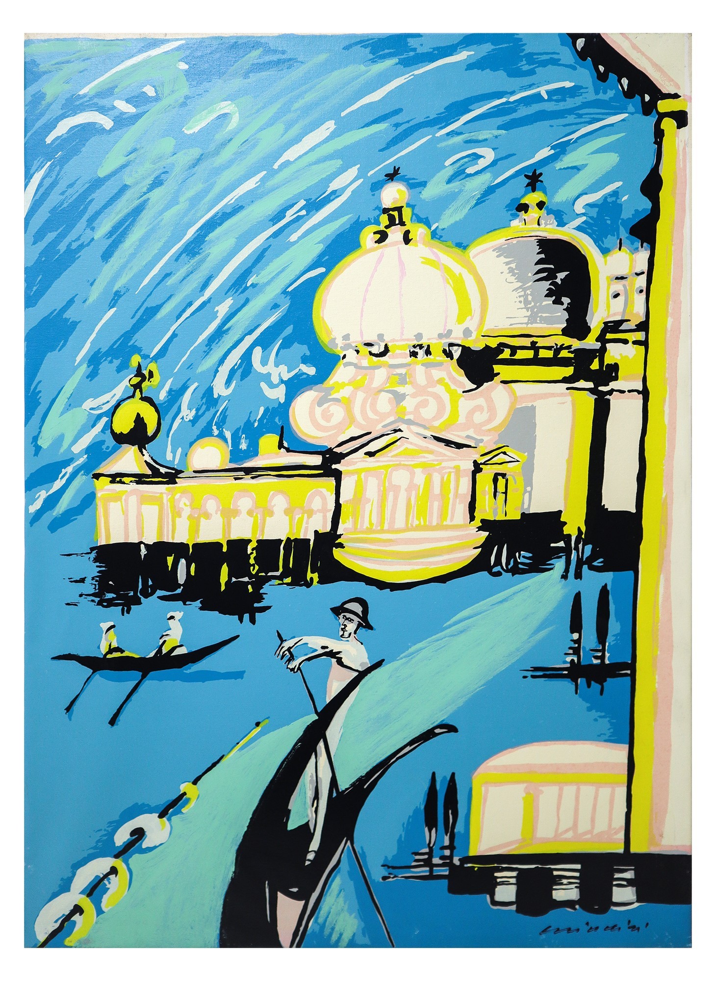 Remo Brindisi (Roma 1918-Lido di Spina 1996) - Venezia cm 50 x cm 70 Multiplo retouche' su tela, stampayo in 8 colori ad olio. N.45/100, Firmato in basso a sinistra. Opera sprovvista di cornice.Multiplo retouche' su tela, stampayo in 8 colori ad olio. N.45/100, Firmato in basso a sinistra. Opera sprovvista di cornice.