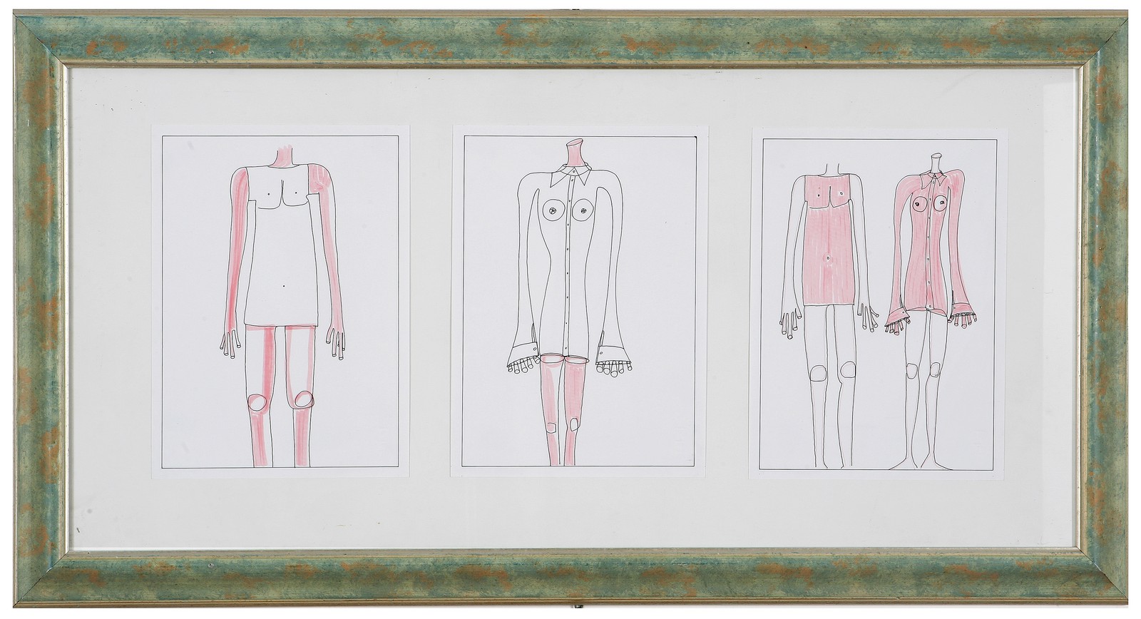 Lotto composto sa tre disegni in un unica cornice (cm 106x56 totali) Cornice presente.