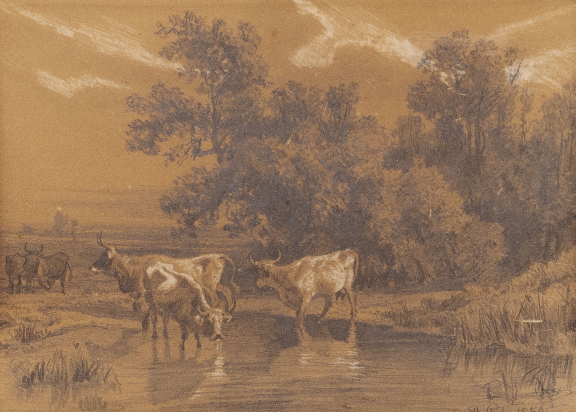 Lot 147 | Filippo Palizzi (Vasto 1818-Napoli 1899) - Mucche al ruscello, 1850