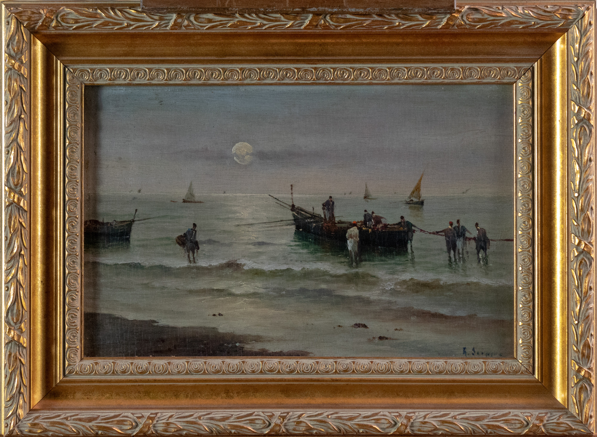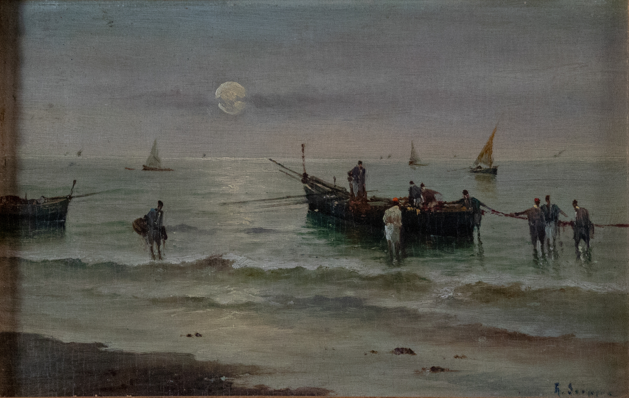 R. Scoppa (XIX e XX secolo), Marina, olio su tavola,18x27,5 cm