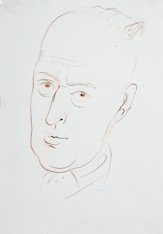 Marino Marini Pistoia 1901 - Viareggio 1980 Ritratto Inchiostro e matita su carta, cm. 32,5x22,6 Firma in basso a destra: Marino. Certificato su foto Fondazione Marino Marini, Pistoia, 11 aprile 1991, con n. 84 Esposizioni: Le scelte del Collezionista Genovese degli anni '40, Genova, Galleria Cesarea, dicembre 1990 - gennaio 1991, cat. p. n.n., illustrato.