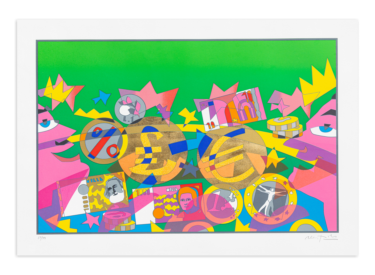 Firma e numerazione (Esemplare 85/99) a matita al fronte