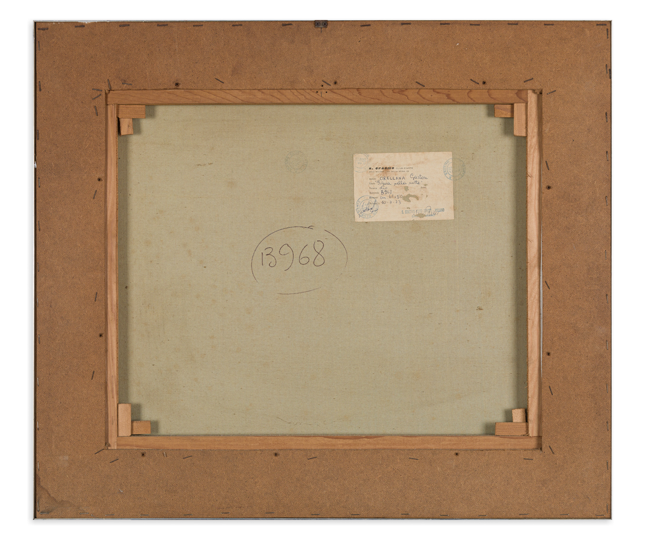 Etichetta e timbri del Club d'Arte S. Erasmo (MI) al retro
