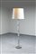 Lampada da terra con fusto rivestito in vetro di forte spessore, base in metallo.