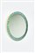 Specchio di forma rotonda con cornice in vetro colorato, bordi in ottone.