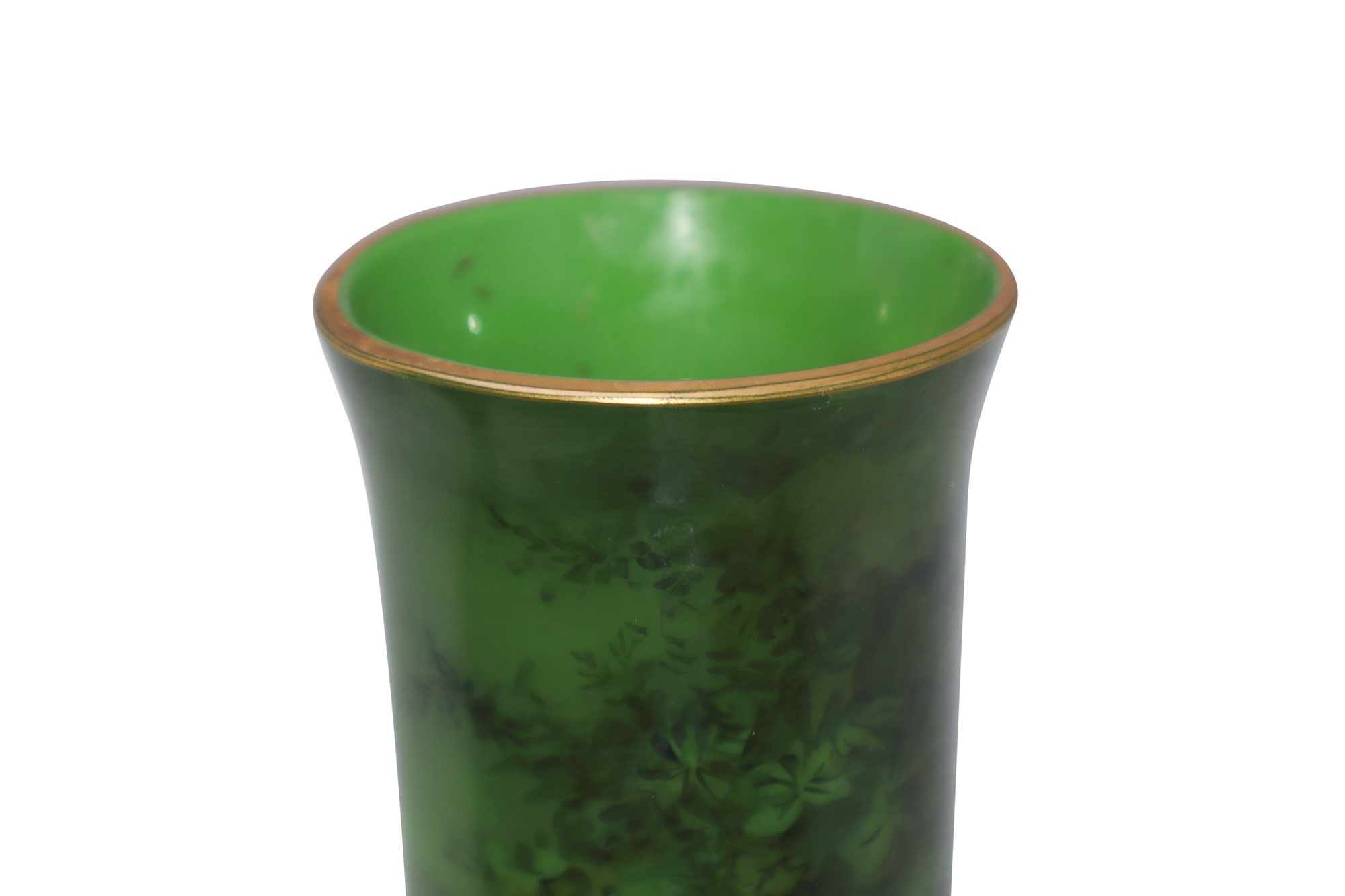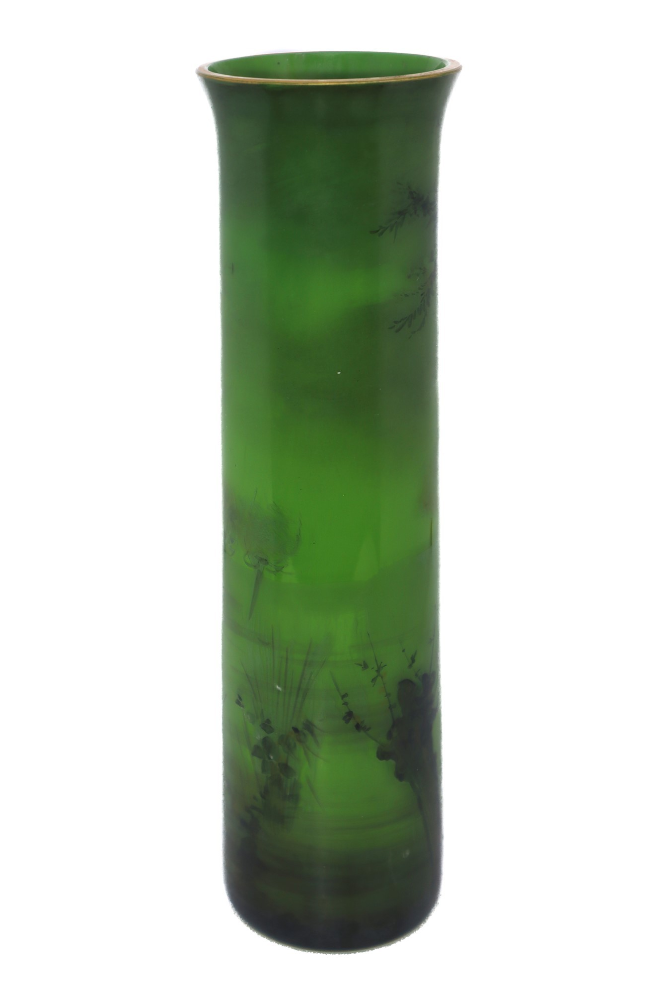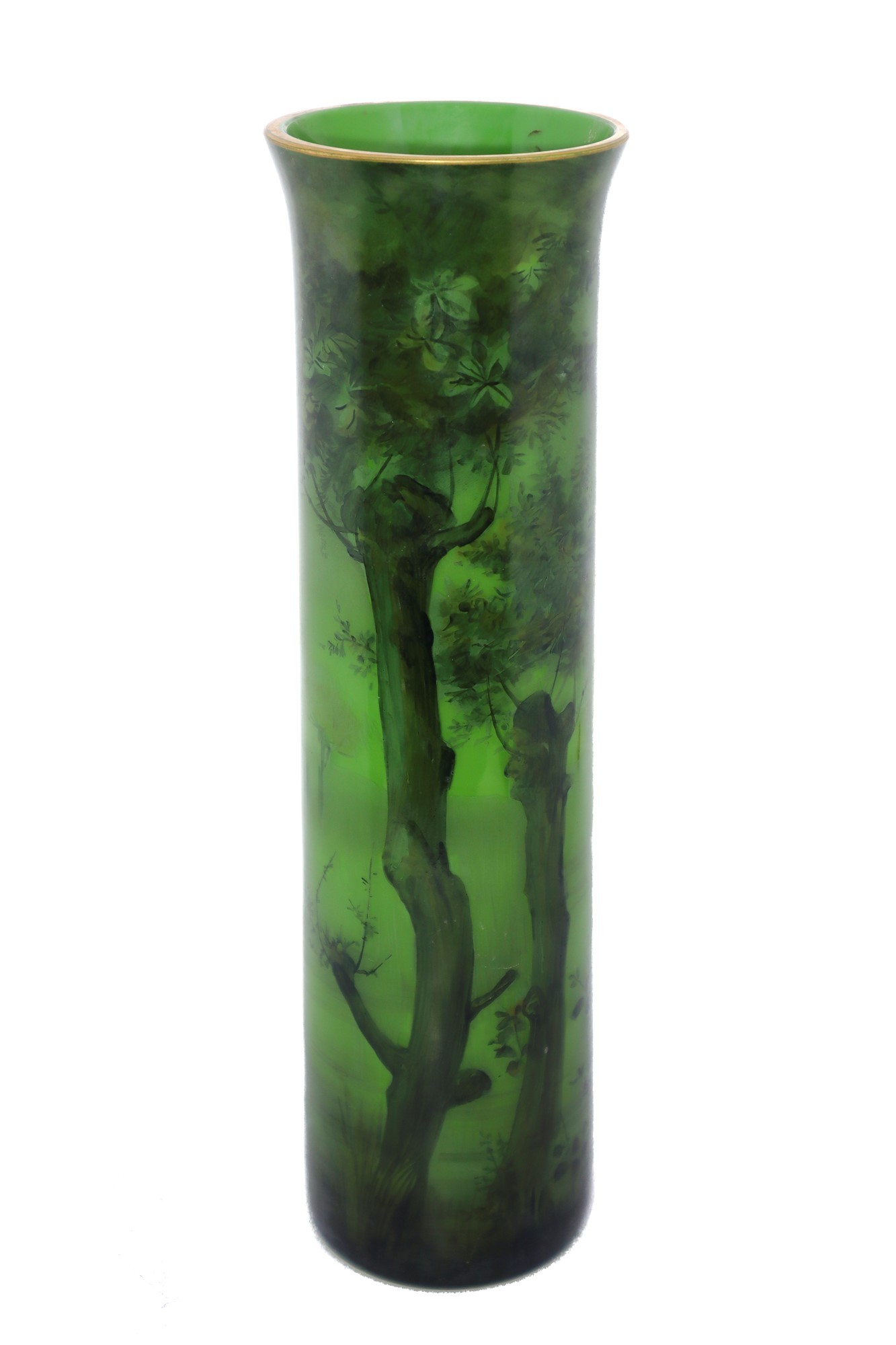 Vaso in opalina di forma cilindrica, 20° secolo h cm 25,5 In vetro dipinto e smaltato, Francia Art Nouveau.