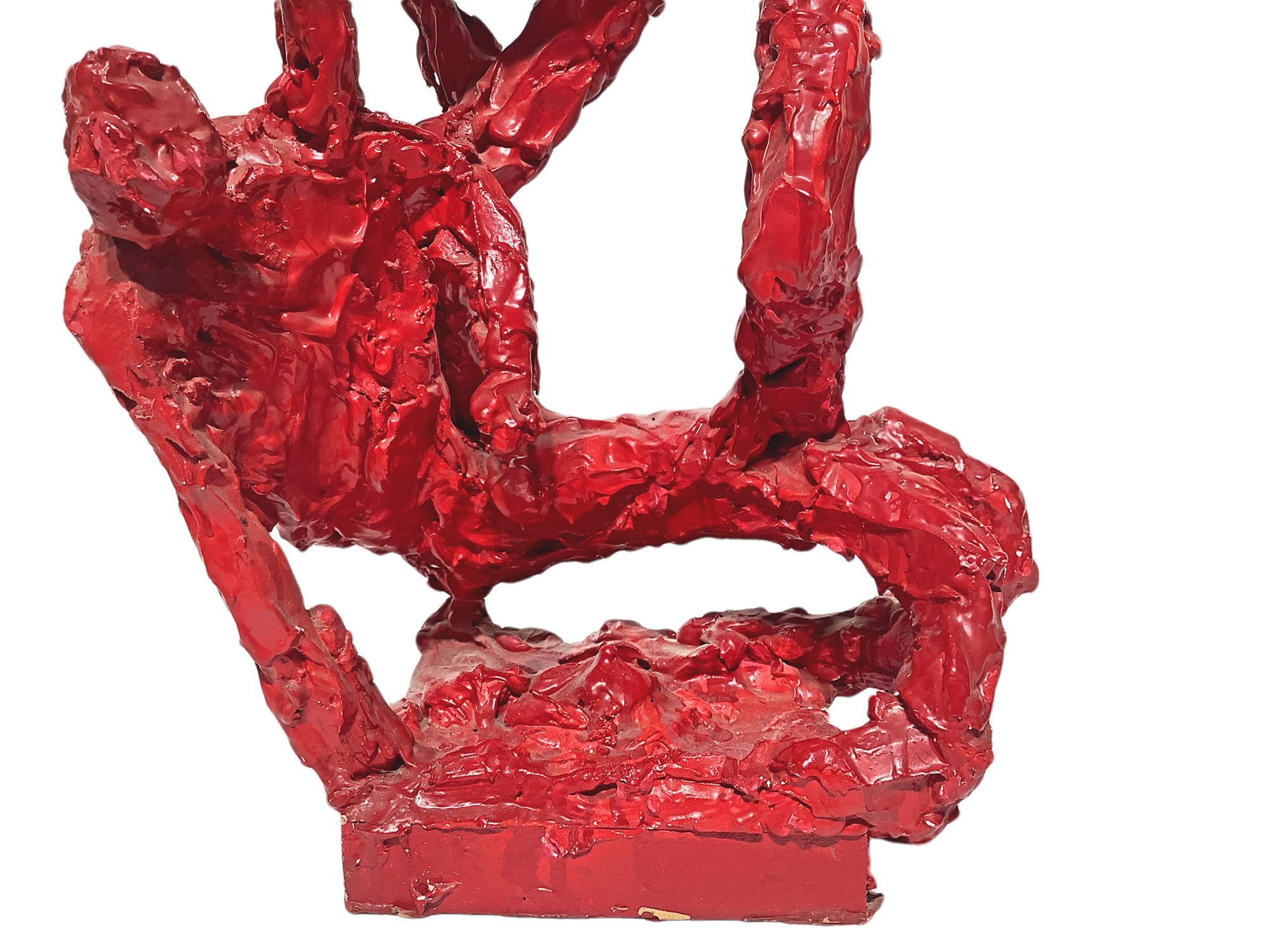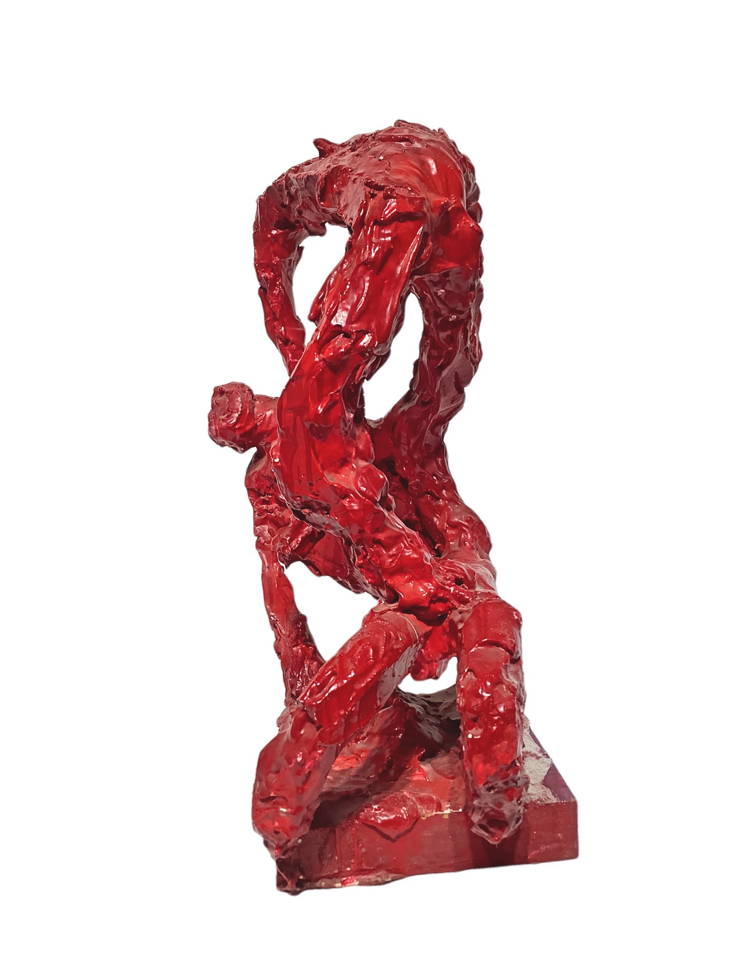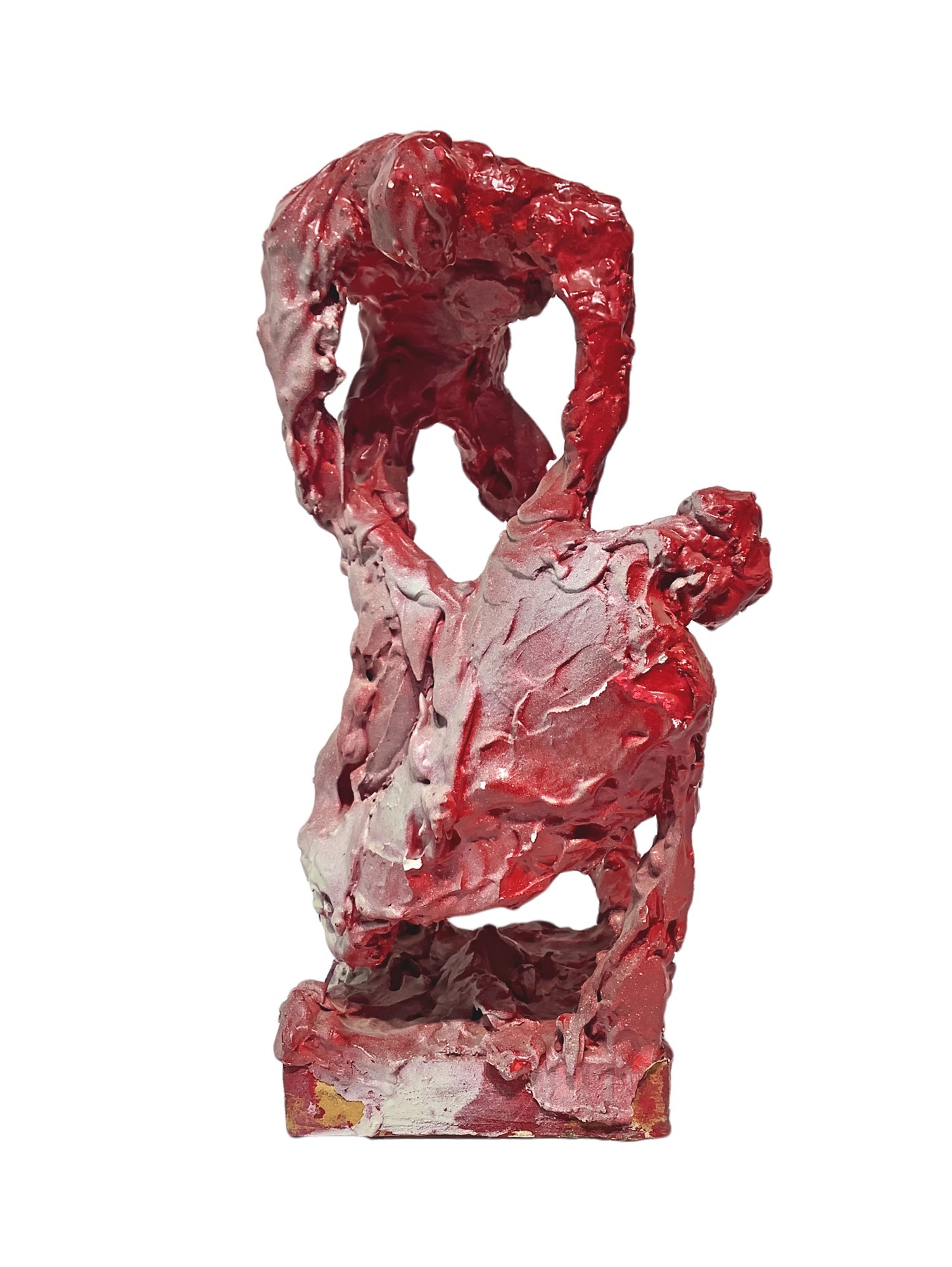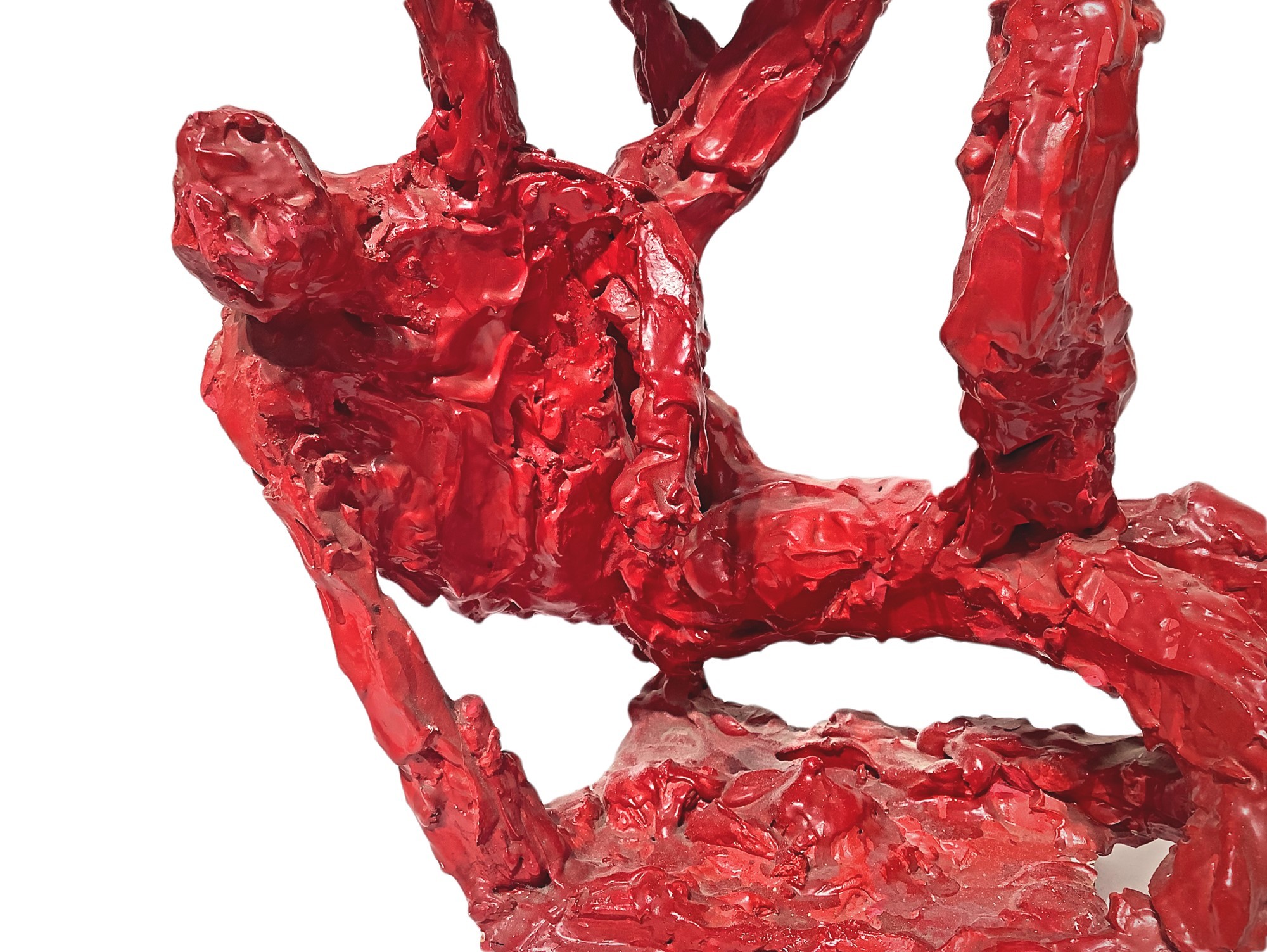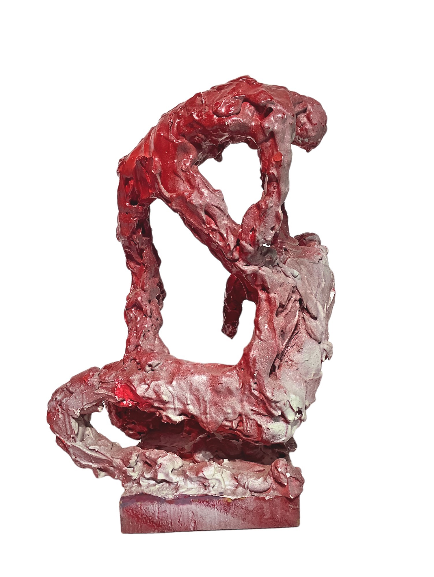 Lottatori H cm 50 Scultura in pasta bianca laccata nei toni del rosso