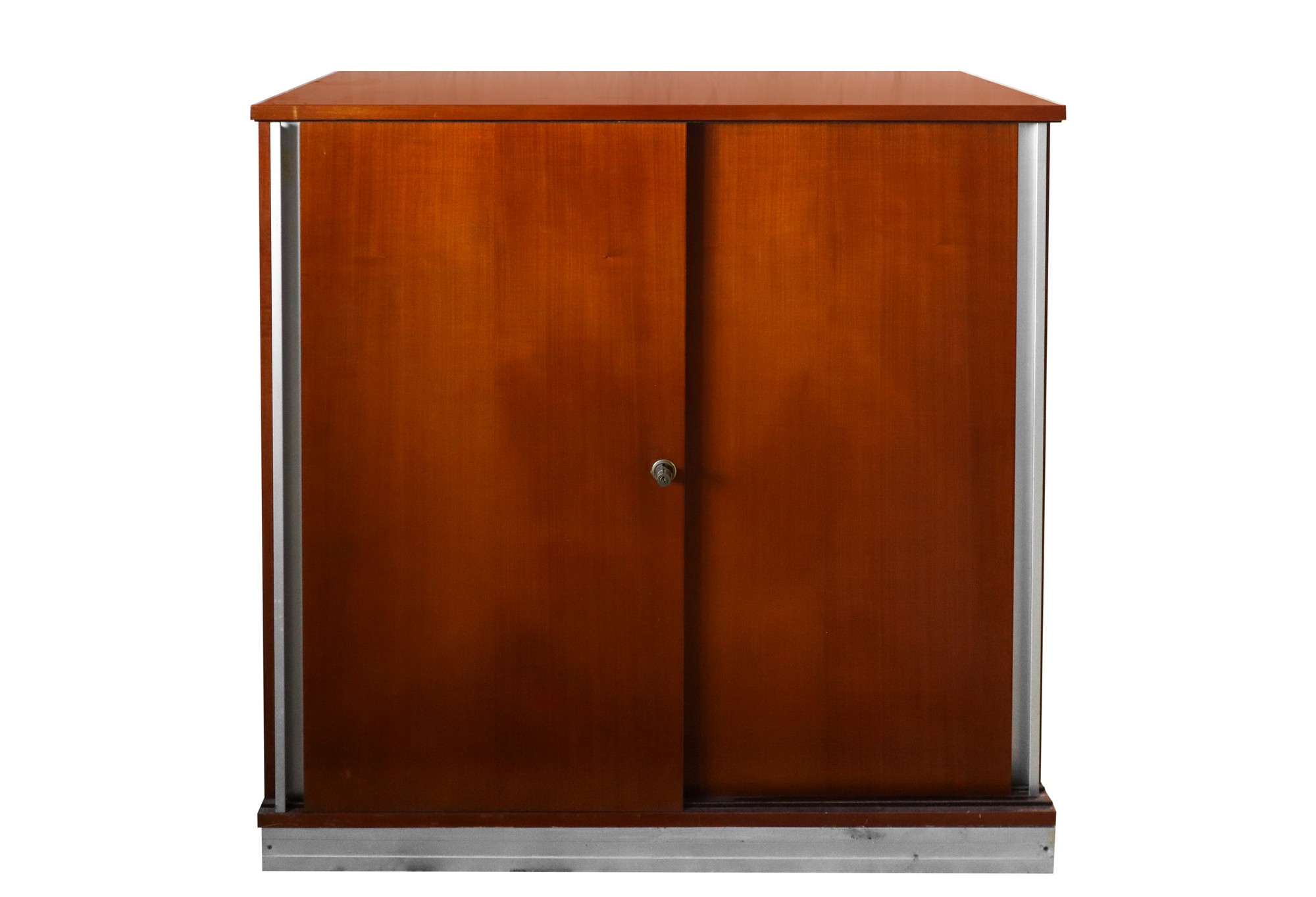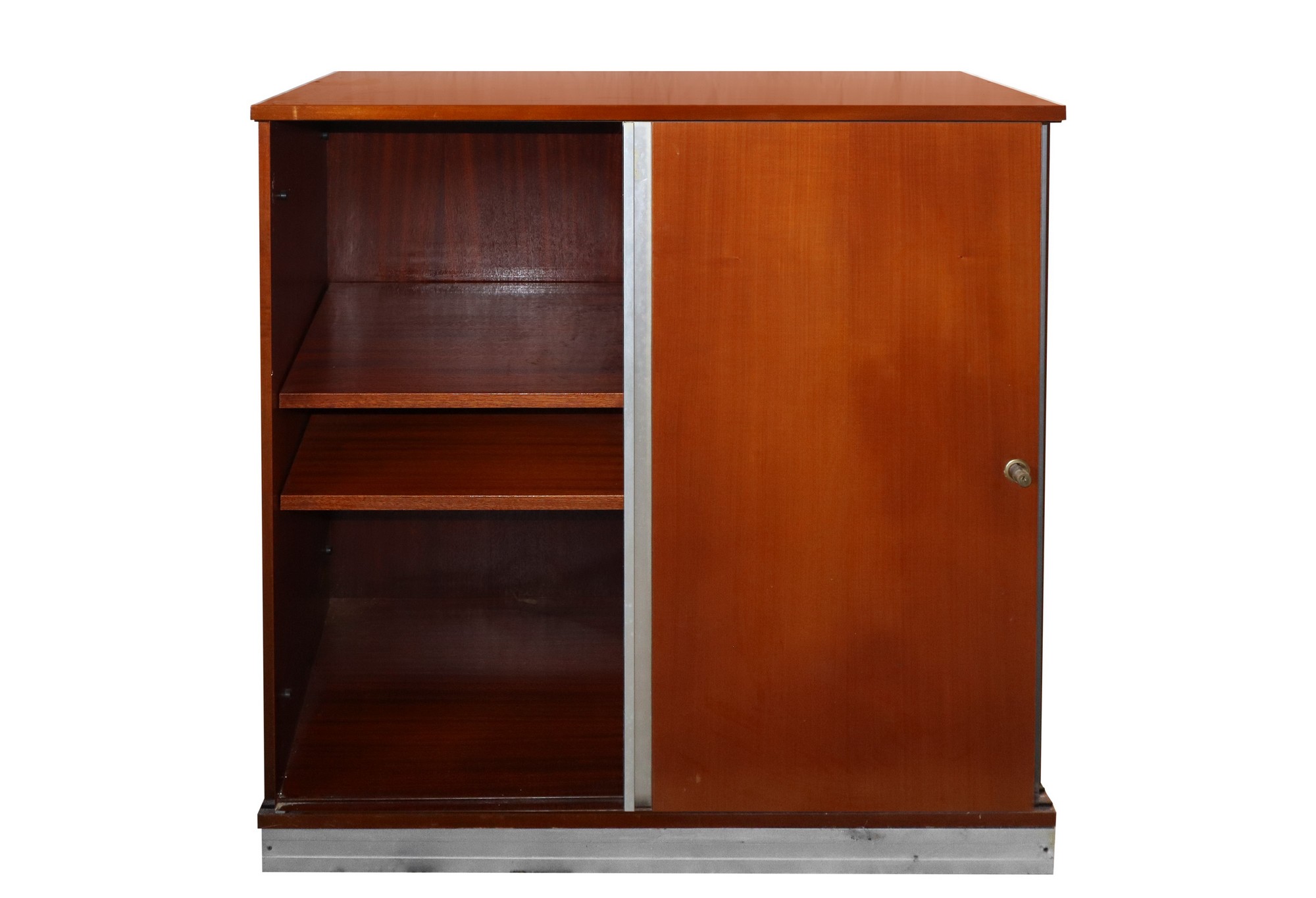 Ico Parisi per Mim - Mobile contenitore in legno di faggio mod.Urio h cm 96 x cm 95 x cm 45 Con ante scorrevoli e dettagli in alluminio satinato. Interno con mensole. Presenti segni d'uso