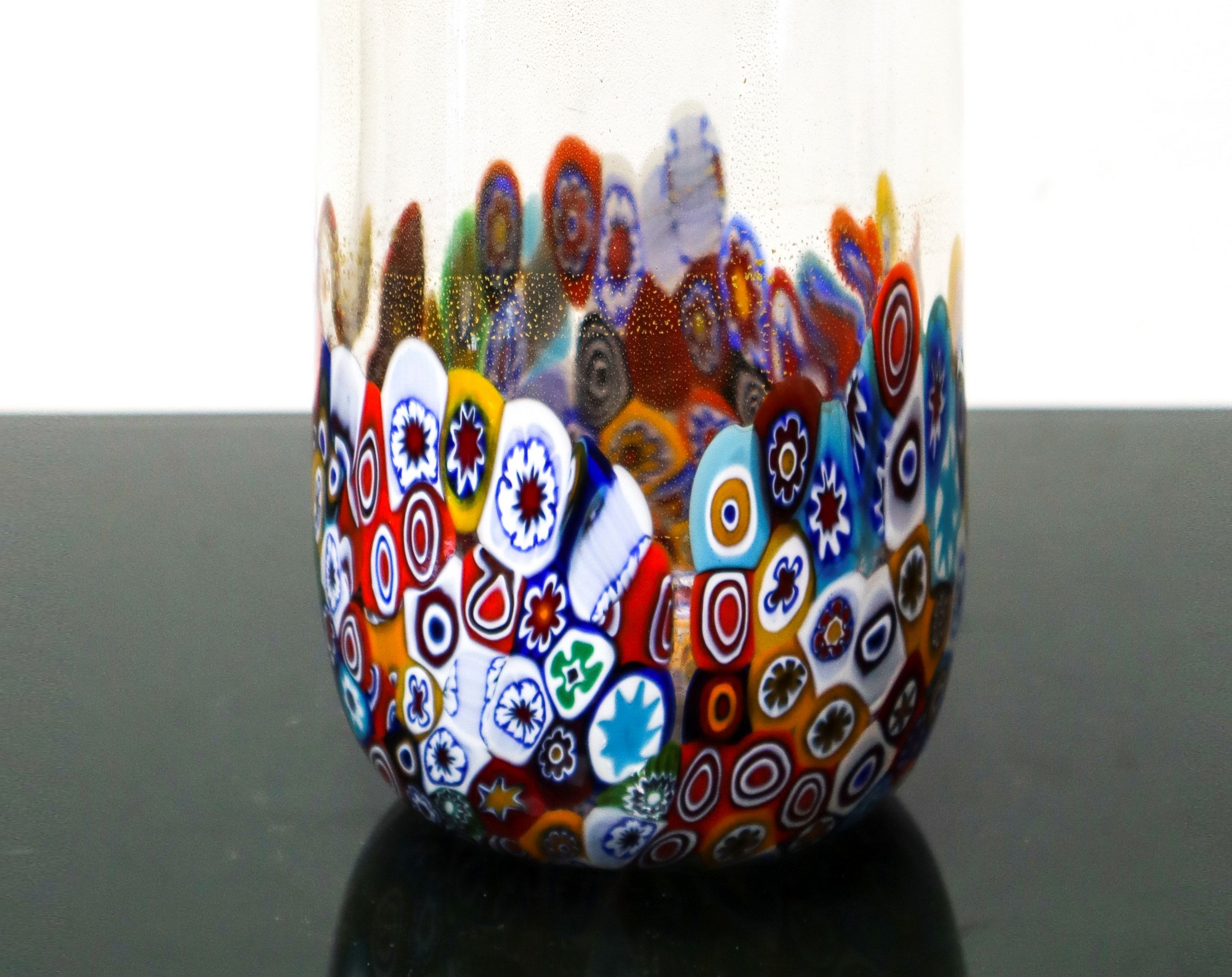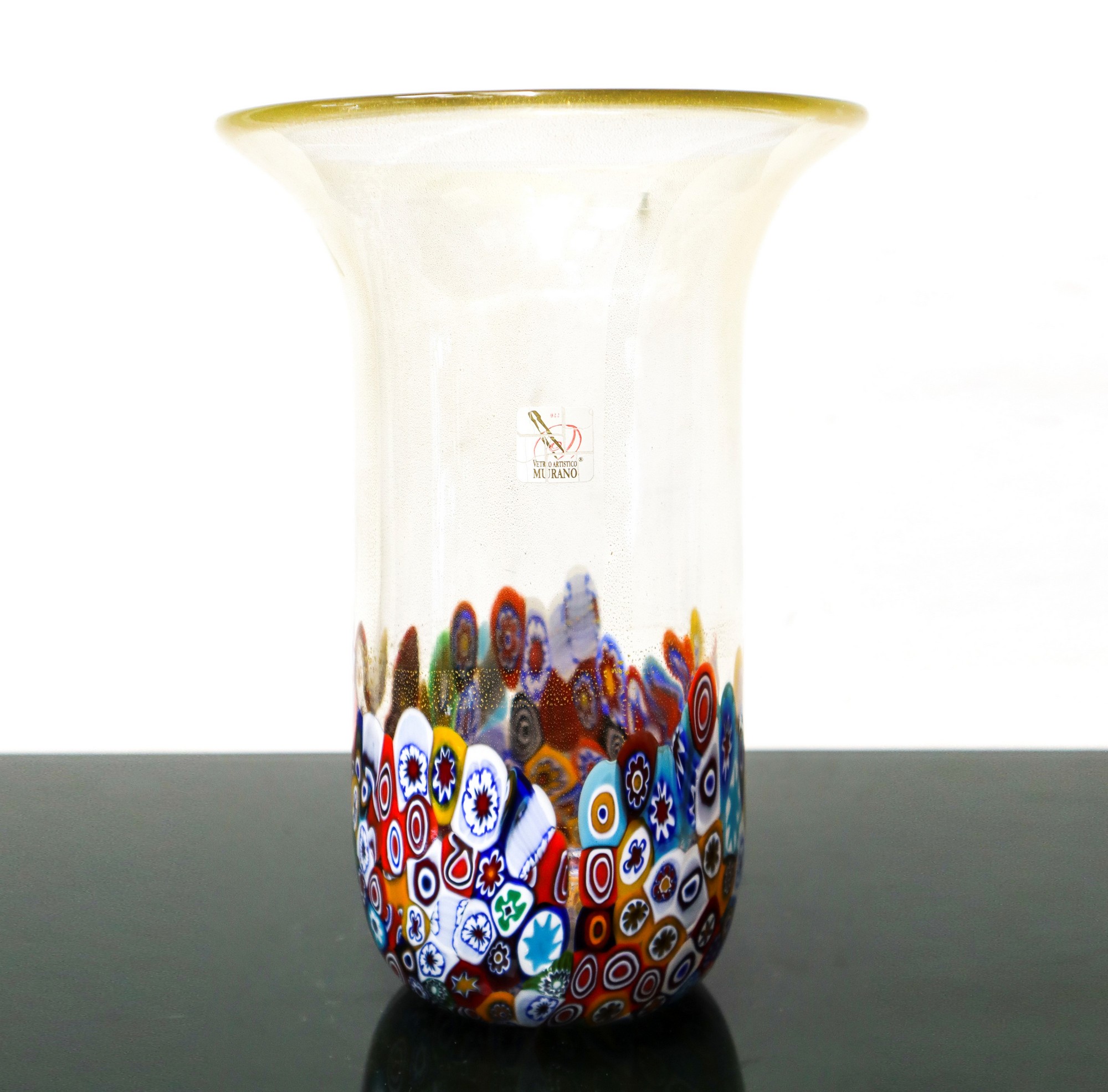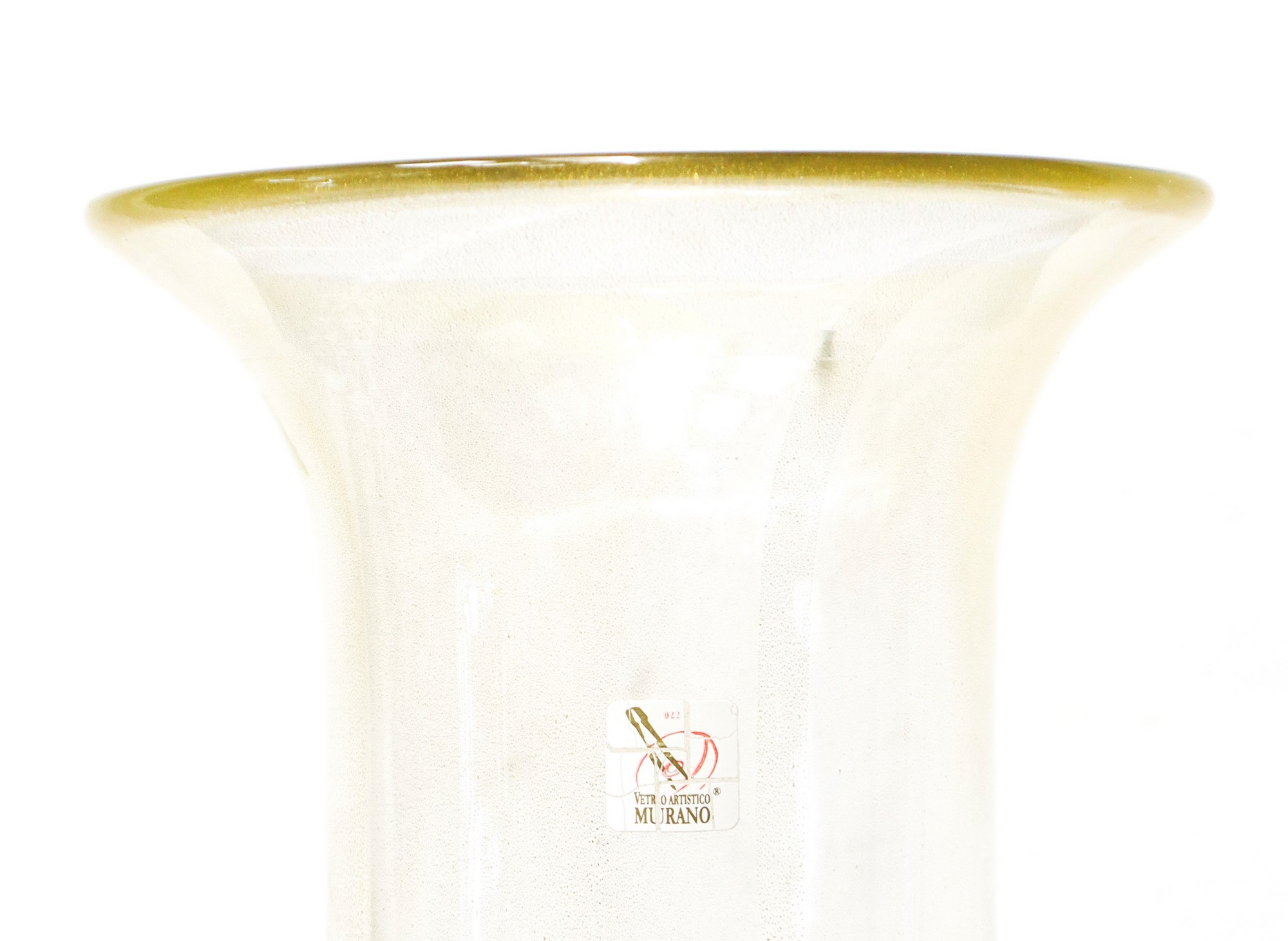 Vaso vetro artistico Murano h cm 22 Con muline e foglie oro