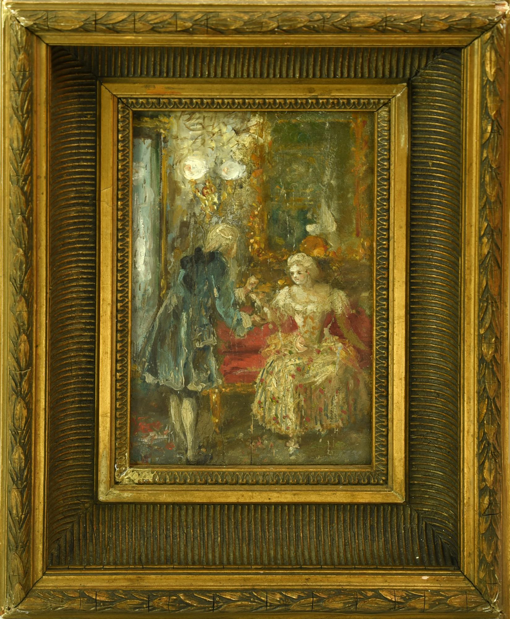 Scuola del XIX secolo SCENA GALANTE olio su tavola, cm 24x17,5