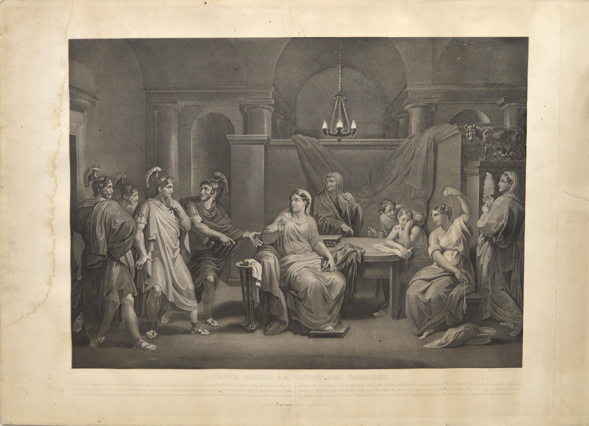 Scuola del XIX secolo LUCREZIA RICEVE LA VISITA DEI TARQUINI litografia, cm...