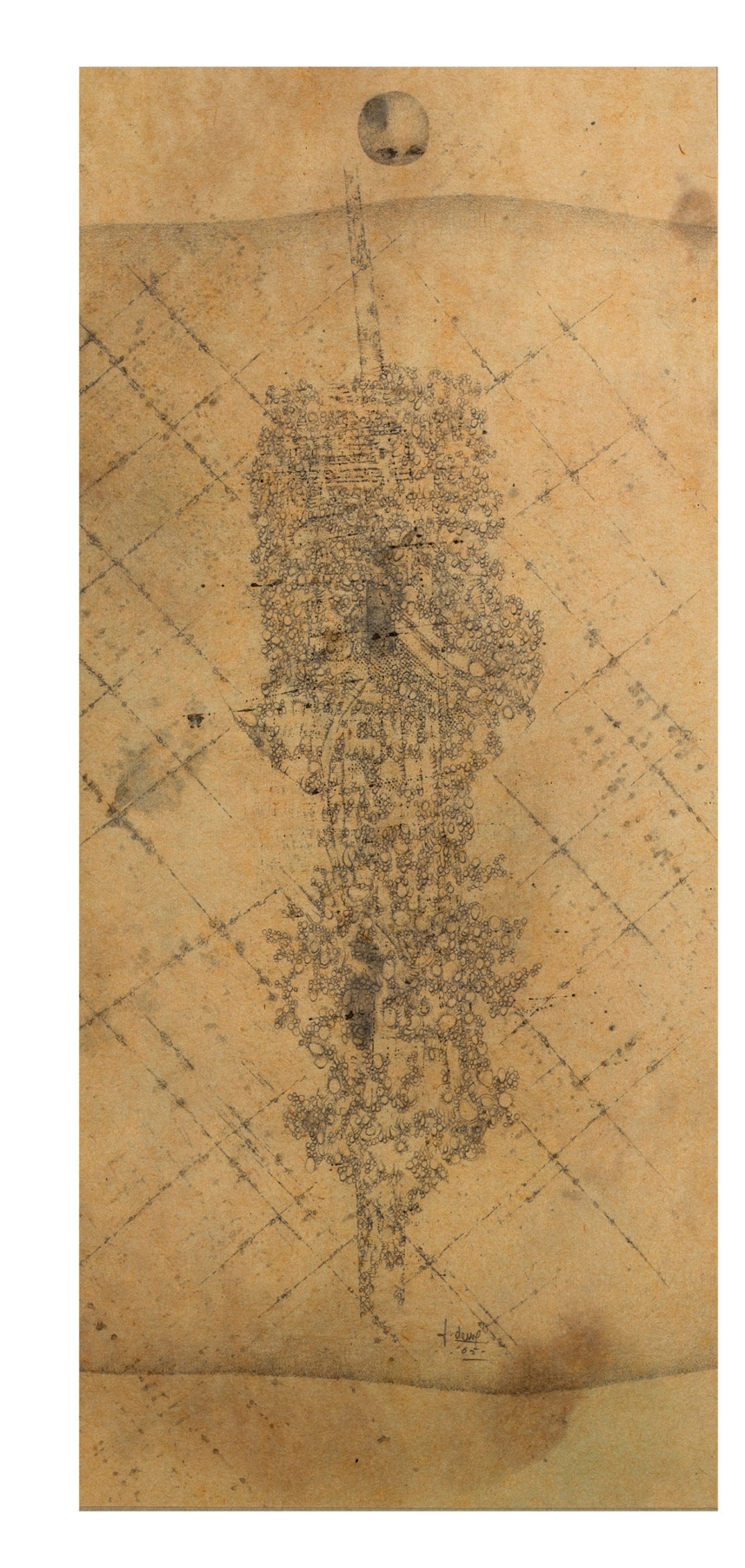Mine graphite et technique mixte sur papier, signée et datée en bas à droite