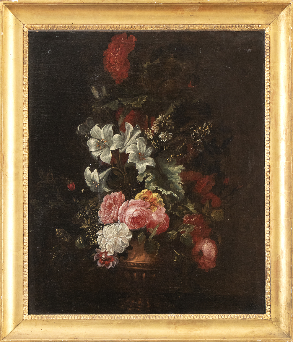 Olio su tela applicato su cartone, cm. 73x61. Con cornice.
