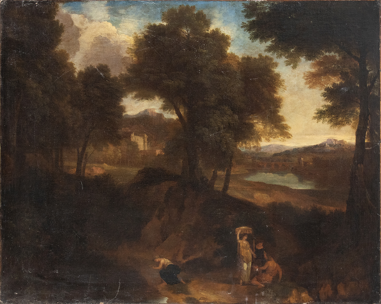 Paesaggio con figure, fiume e ponte sullo sfondo