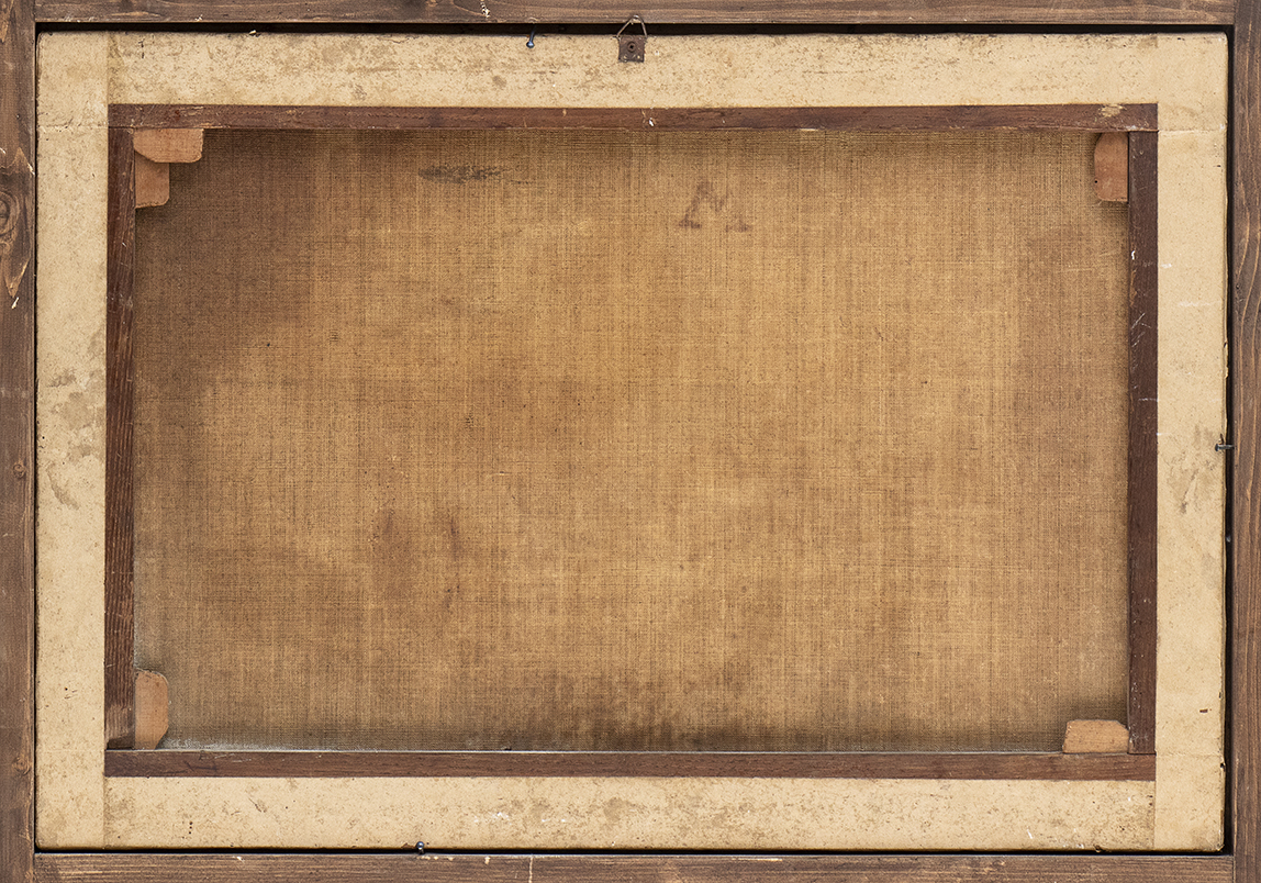 Il dipinto reca su retro in alto al centro una lettera a pennello: "M".