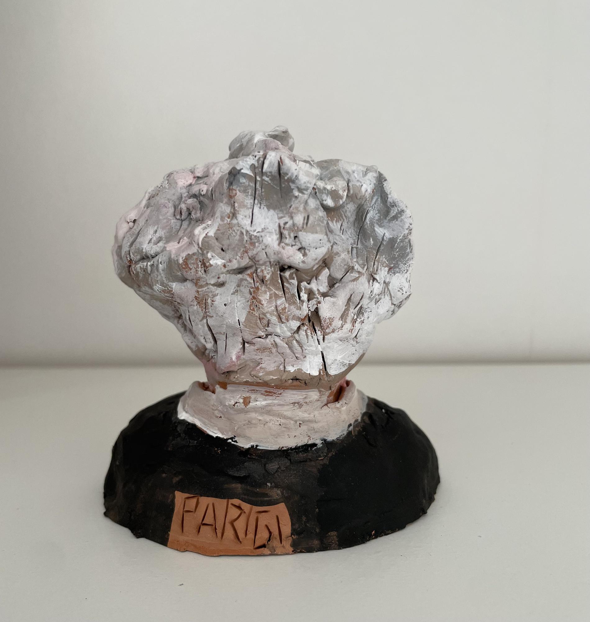 Claudio Parigi EINSTEIN CARICATURA terracotta e acrilico, h cm 9 sul retro:...