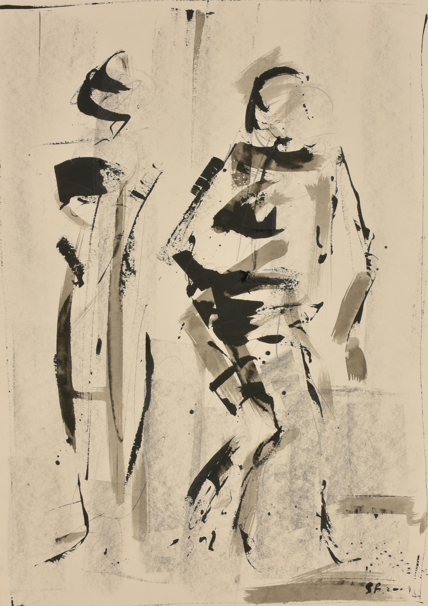 S. B. SENZA TITOLO tecnica mista su carta Fabriano, cm 70x50 firma, data...