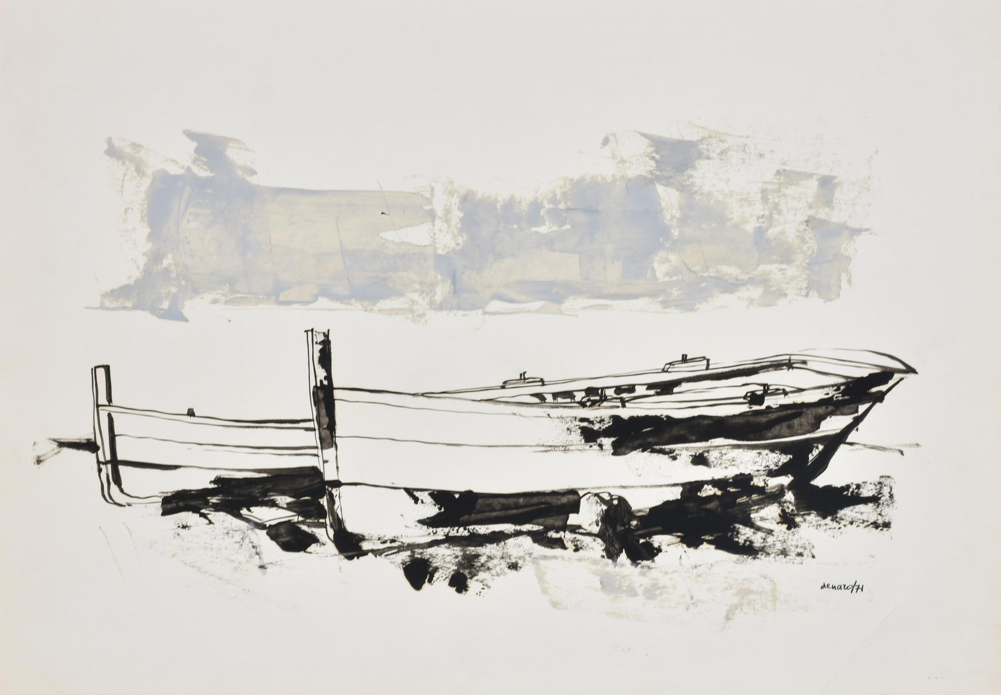 Lot 165 | De Naro BARCHE inchiostro e tempera su carta, cm 35x50 firma e data sul...