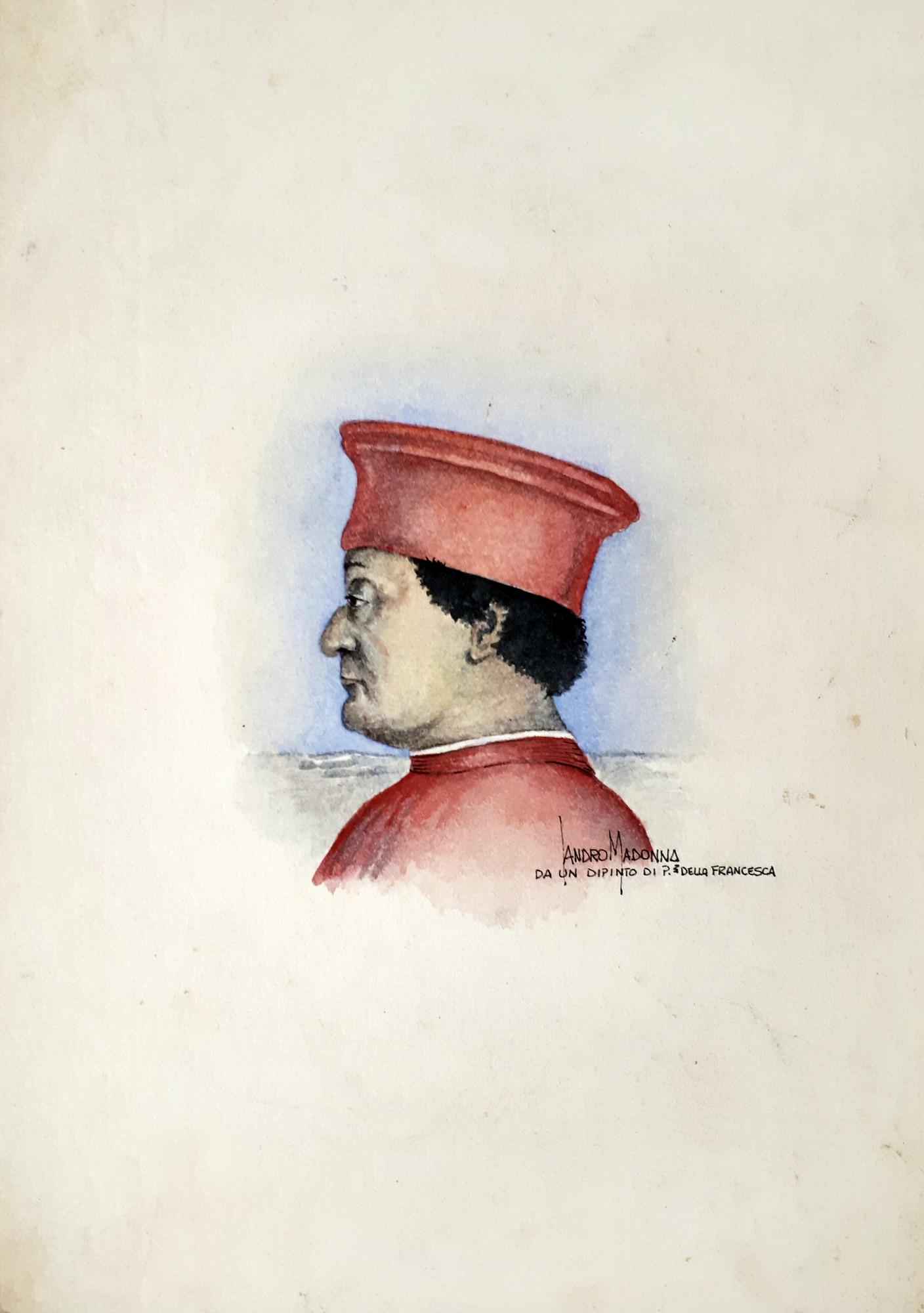 BOZZETTO PER CARTOLINA COMMEMORATIVA (DA UN DIPINTO DI PIERO DELLA FRANCESCA)