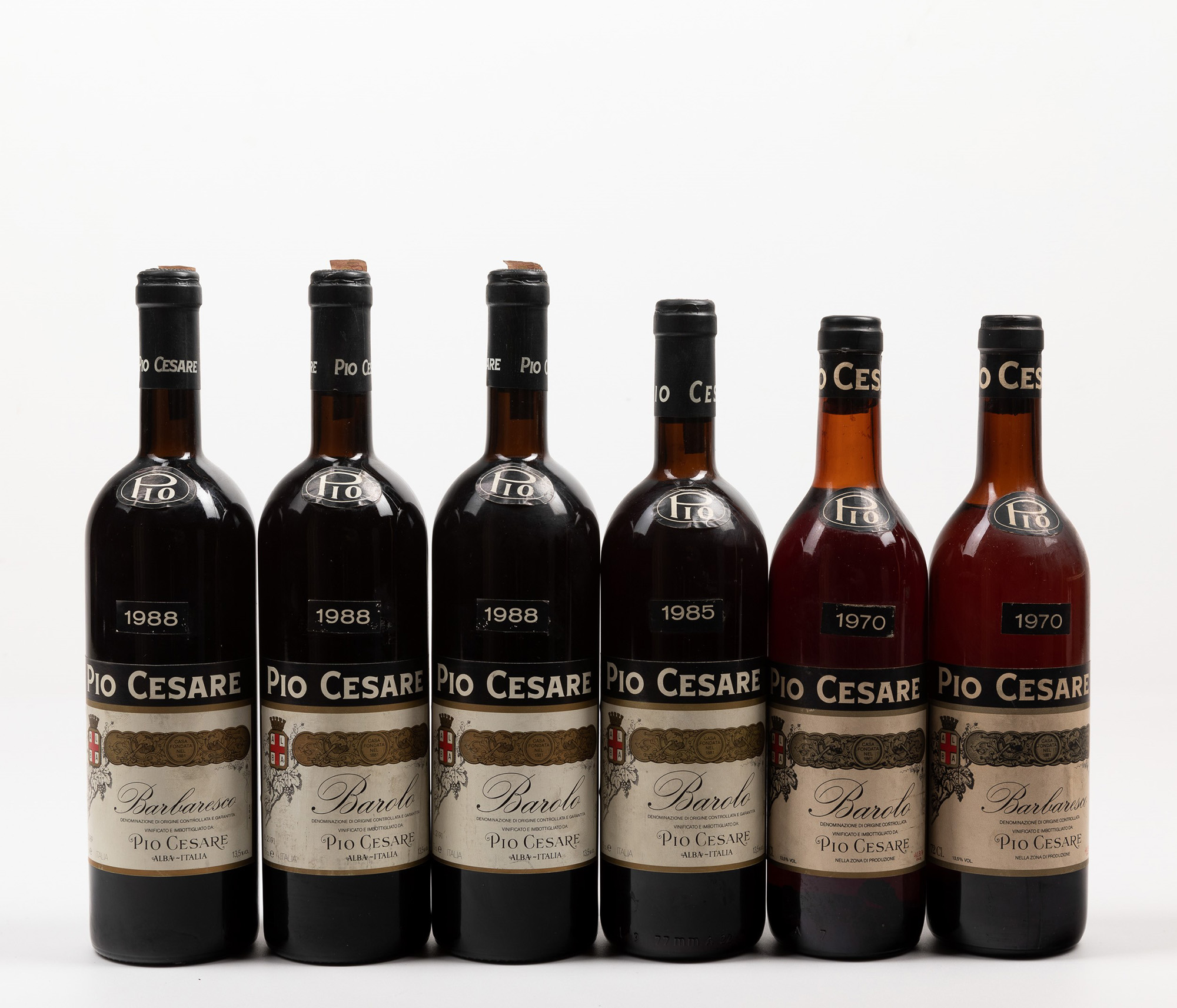 (6 Bts), Barbaresco, 1988, 1 Bt TS, Barolo, 1988, 2 Bts TS, Barolo, 1985, 1 Bt S, Barolo, 1970, 1 Bt TS, Barbaresco, 1970, 1 Bt S, etichette e capsule con segni d'usura del tempo, Barolo e Barbaresco 1970 di colore chiaro