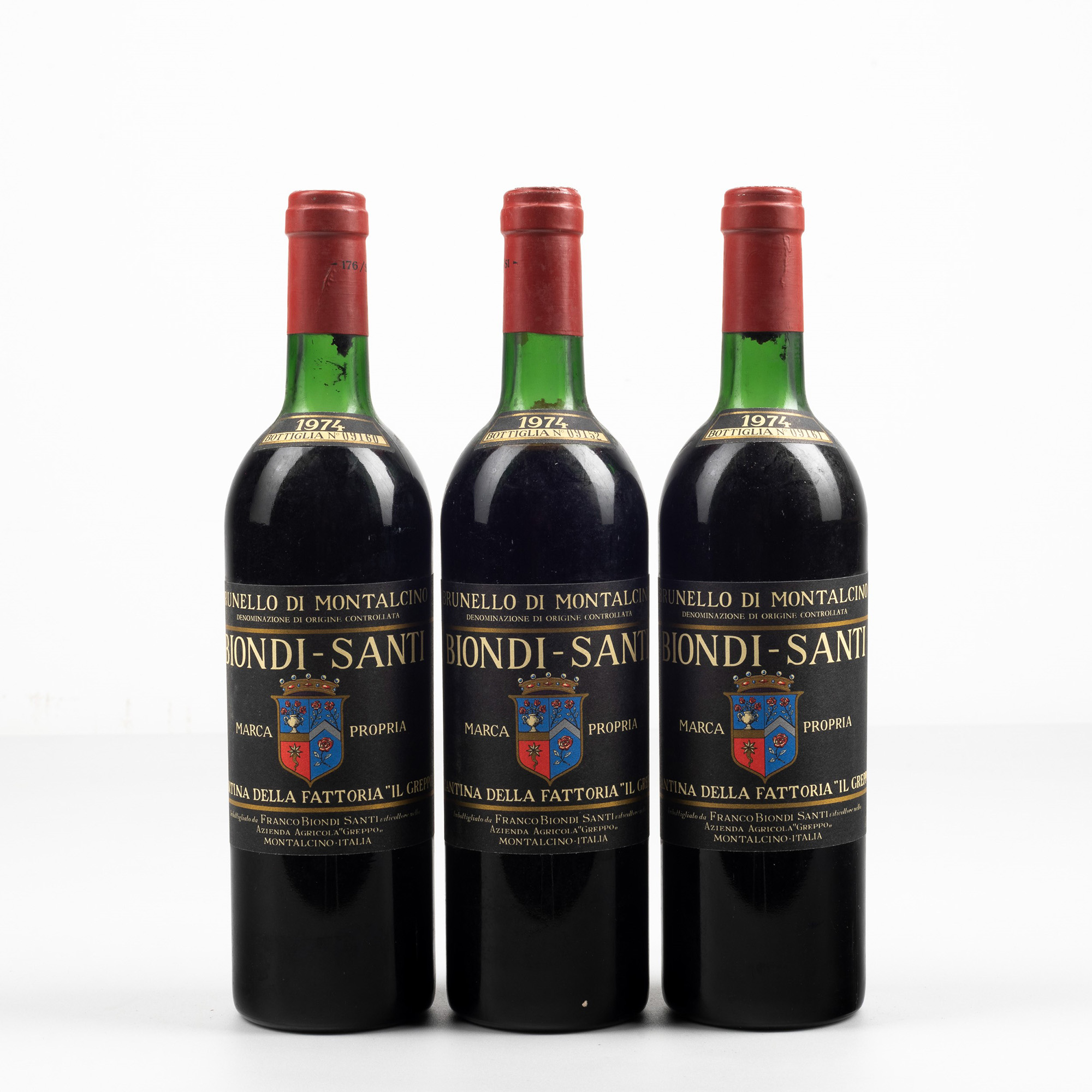 (3 Bts), 1974, 3 Bts S, etichette e capsule con segni d'usura del tempo