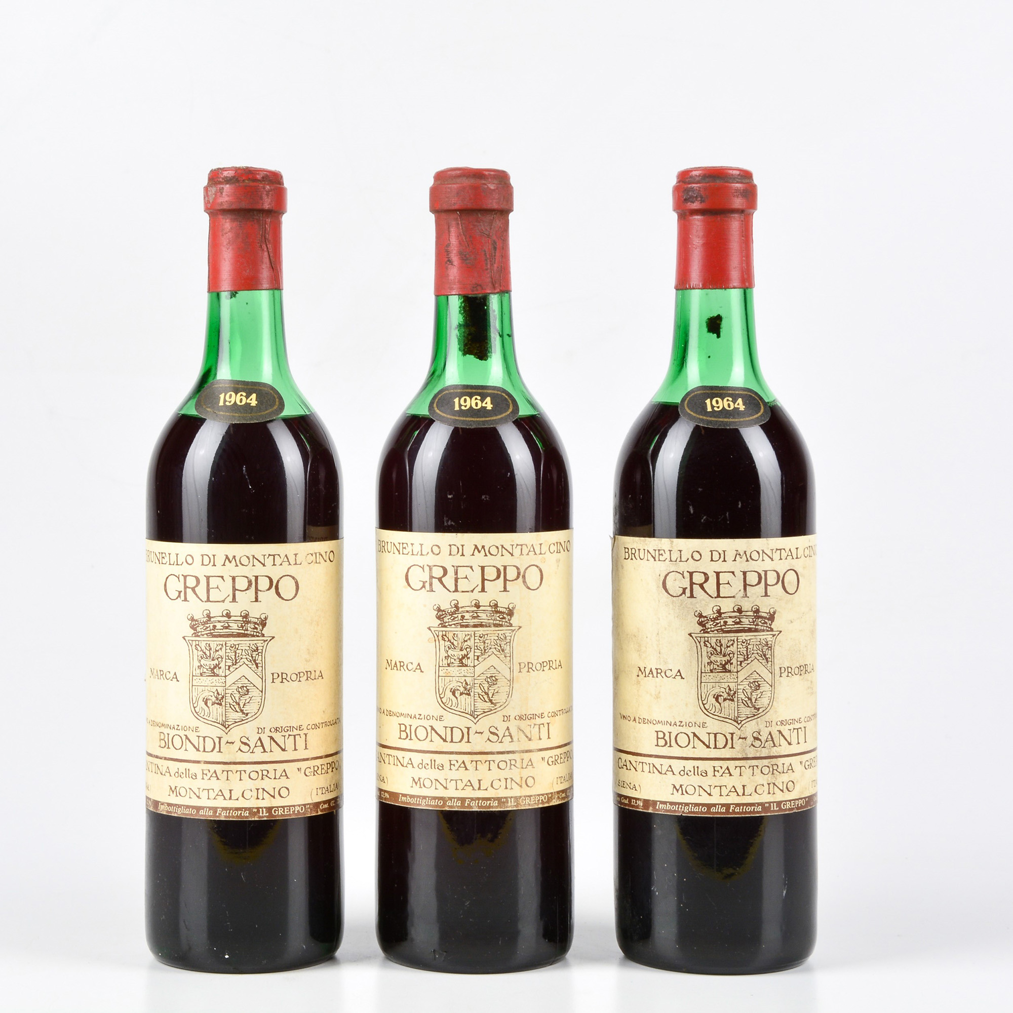 (3 Bts), 1964, 3 Bts TS, etichette e capsule con segni d'usura del tempo