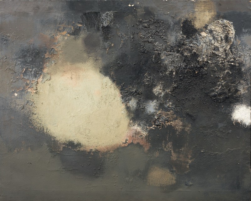 Luis Feito Madrid 1929 Pintura n. 1, 1957 Olio su tela, cm. 116x146 Firma e data al verso sulla tela: Feito / 1957; sul telaio: etichetta Collezione C. M., con n. 251: etichetta XXIX Exposition Biennale Internationale des Beaux Arts - Venise 1958: etichetta XXIX Biennale Internazionale d'Arte / di Venezia - 1958, con n. 391: cartiglio con dati dell'opera. Esposizioni: XXIX Biennale di Venezia, 1958, cat. p. 338, n. 115 (opera datata 1958). Alcune cadute di colore.